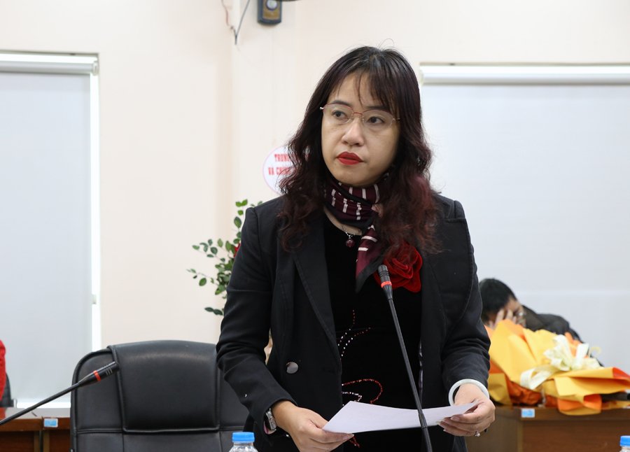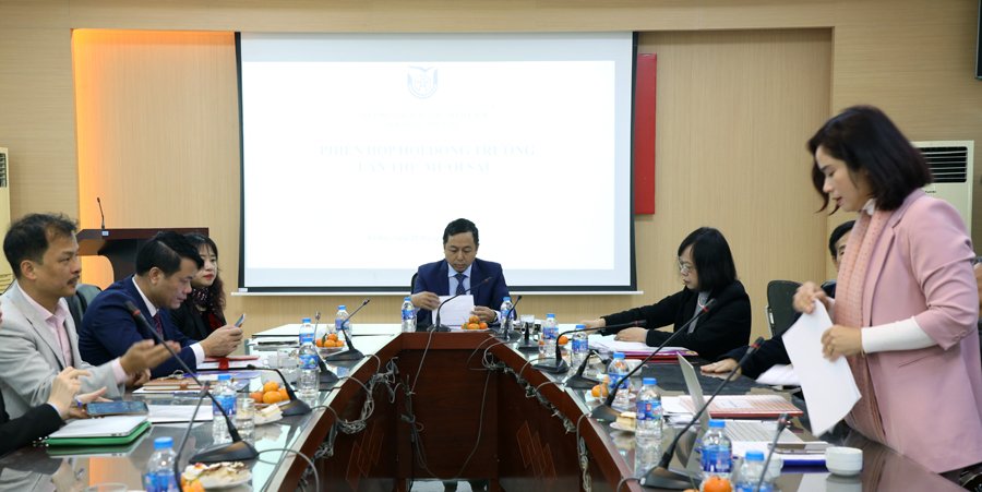 PGS.TS. Nguyễn Vũ Bích Hiền, Hiệu trưởng Nhà trường phát biểu tại phiên họp