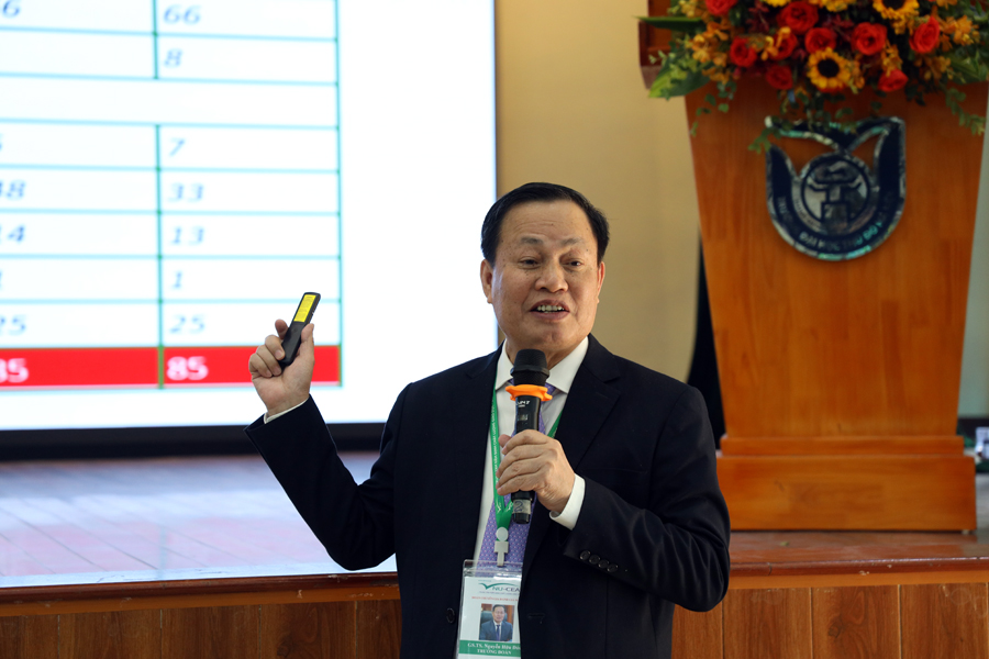 GS.TS. Nguyễn Hữu Đức - Trưởng đoàn chuyên gia đánh giá ngoài chương trình đào tạo nhận xét các tiêu chí đánh giá
