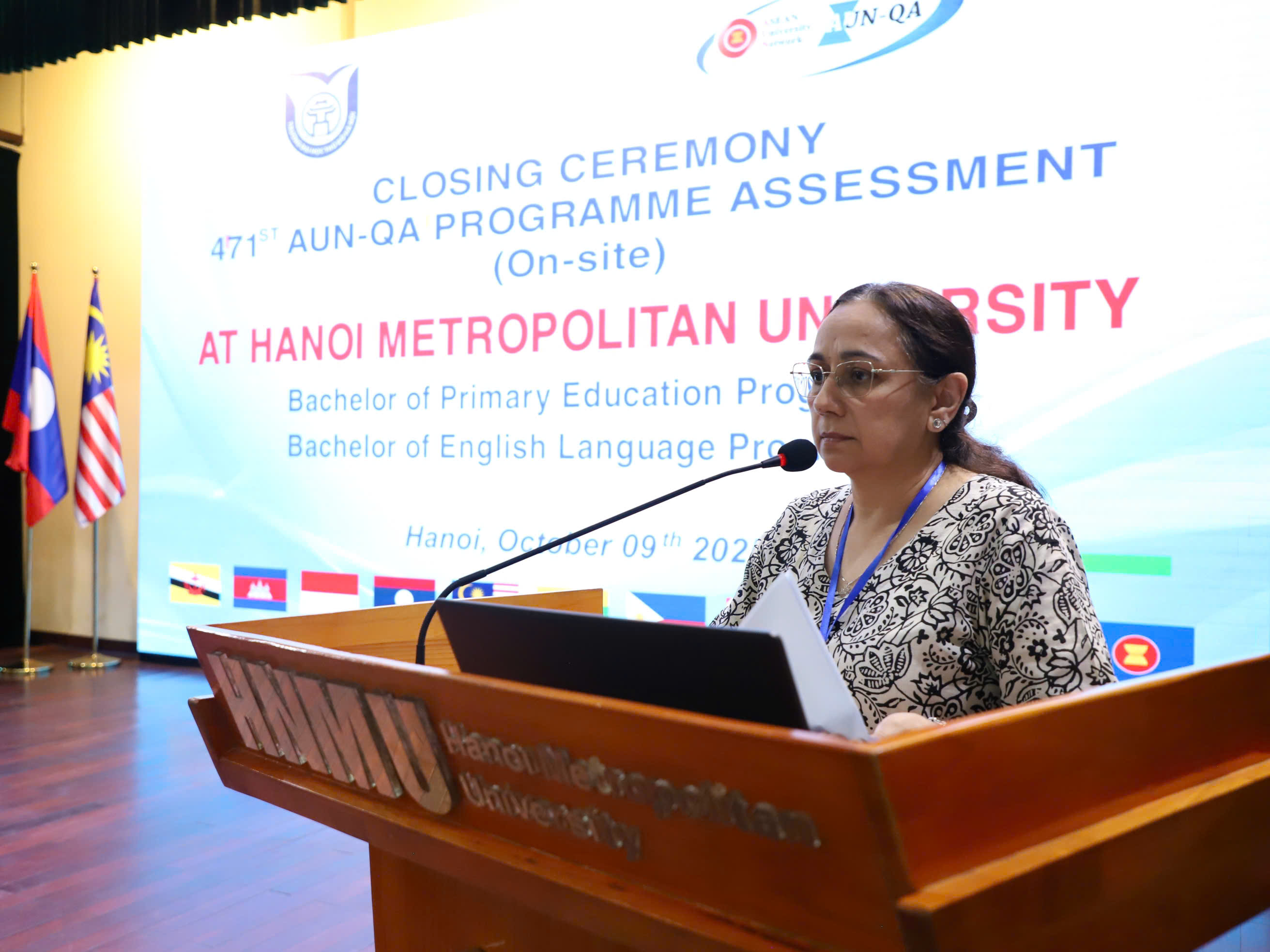 Thay mặt Đoàn đánh giá, GS.TS. Kiran Kaur gửi lời cảm ơn sâu sắc đến Trường Đại học Thủ đô Hà Nội vì đã đồng hành cùng Đoàn đánh giá trong quá trình chuẩn bị và tổ chức đánh giá 02 chương trình đào tạo của Trường. GS.TS. Kiran Kaur nhấn mạnh, đây không chỉ là một đợt đánh giá đối với 02 chương trình đào tạo của Trường, mà còn giúp Đoàn đánh giá và Nhà trường cùng nhau nâng cao chất lượng và phát triển bền vững các chương trình đào tạo trong khu vực. Các chuyên gia trong Đoàn cũng chia sẻ thêm những sáng kiến mới của AUN-QA trong thời gian sắp tới. Triển khai hệ thống IQA (Internal Quality Assurance) như một động lực cốt lõi thúc đẩy sứ mệnh chung của AUN về đảm bảo chất lượng, phát triển mạng lưới chuyển đổi số trong giáo dục, thúc đẩy năng lực công nghệ và kỹ thuật số cho các trường đại học, đảm bảo không ai bị bỏ lại phía sau trong thời đại số, tiếp tục đẩy mạnh sử dụng Tiếng Anh như một ngôn ngữ dạy chủ đạo, góp phần kết nối các nền văn hóa và quốc gia trong khu vực. GS.TS. Kiran Kaur bày tỏ sự tin tưởng rằng, Trường Đại học Thủ đô Hà Nội sẽ tiếp tục phát huy tinh thần đổi mới, hợp tác và không ngừng hoàn thiện chất lượng đào tạo của Trường trong thời gian tới, đồng thời mong muốn được tiếp tục đồng hành cùng Nhà trường trong các đợt đánh giá tiếp theo.