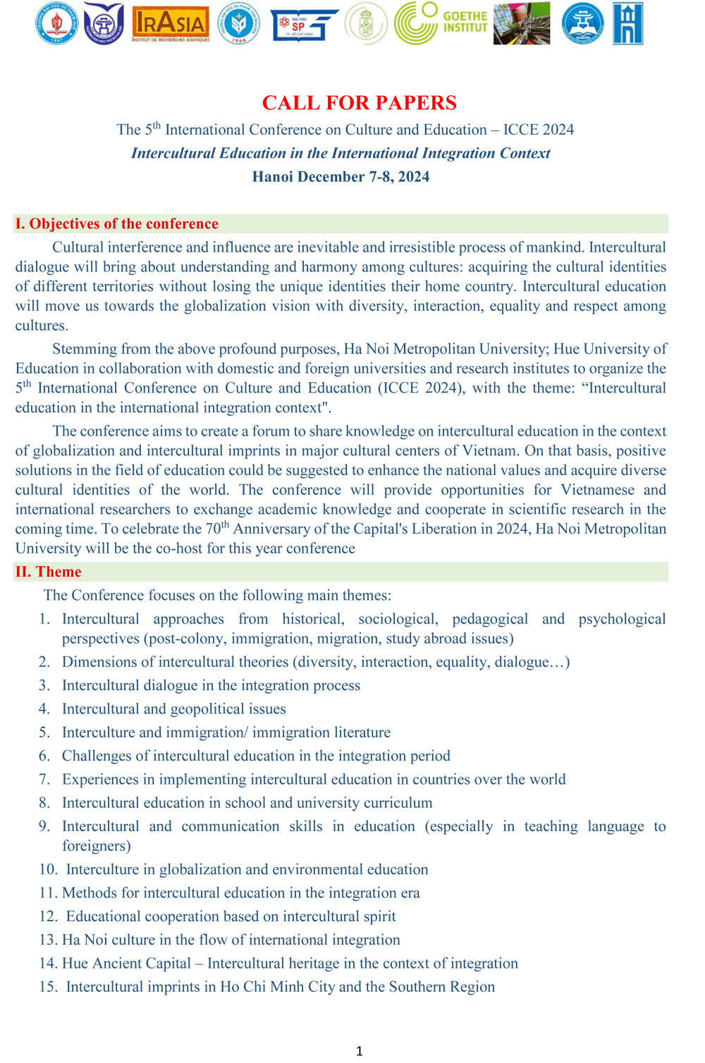 CALL FOR PAPERS: The 5th International Conference on Culture and Education – ICCE 2024