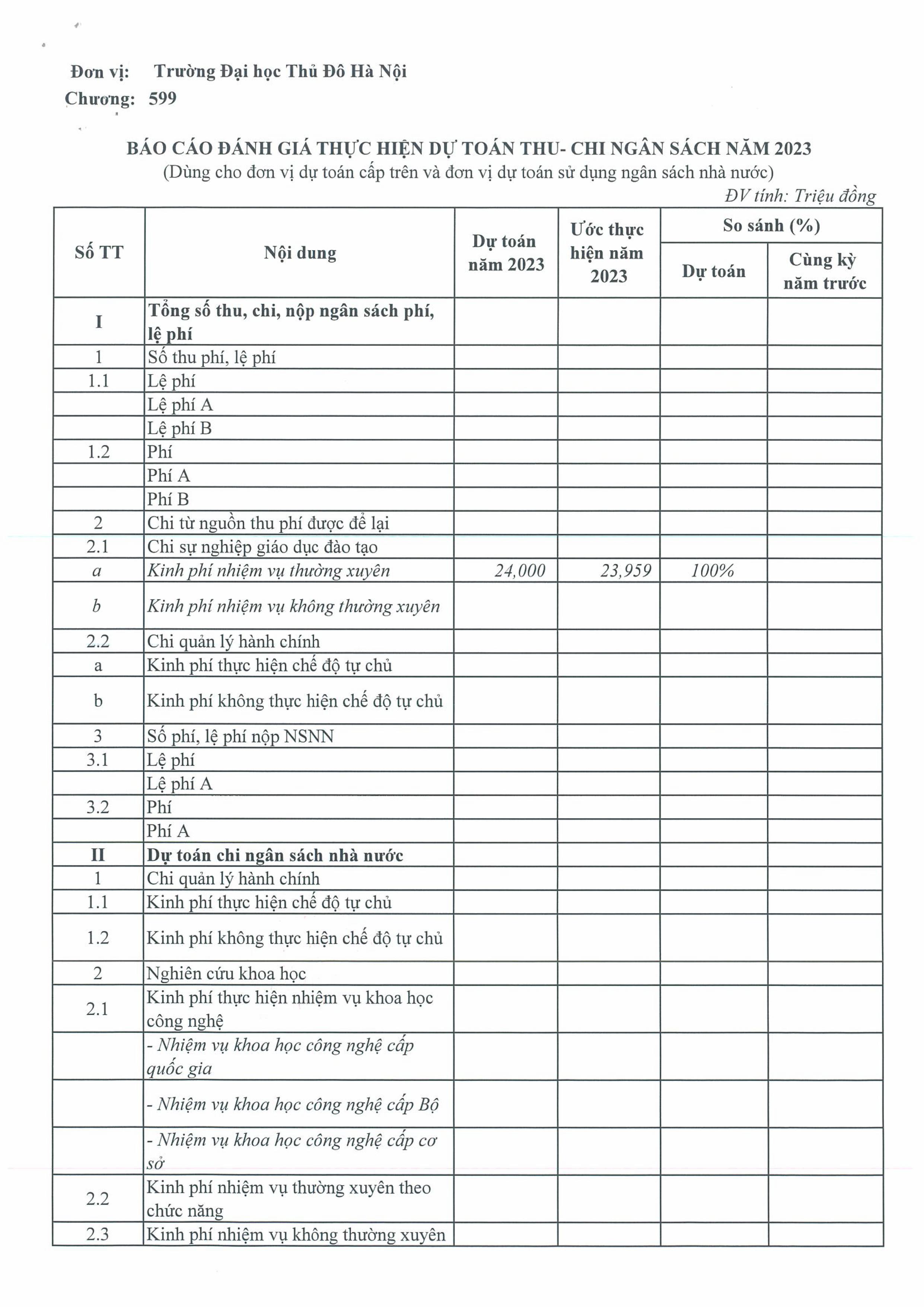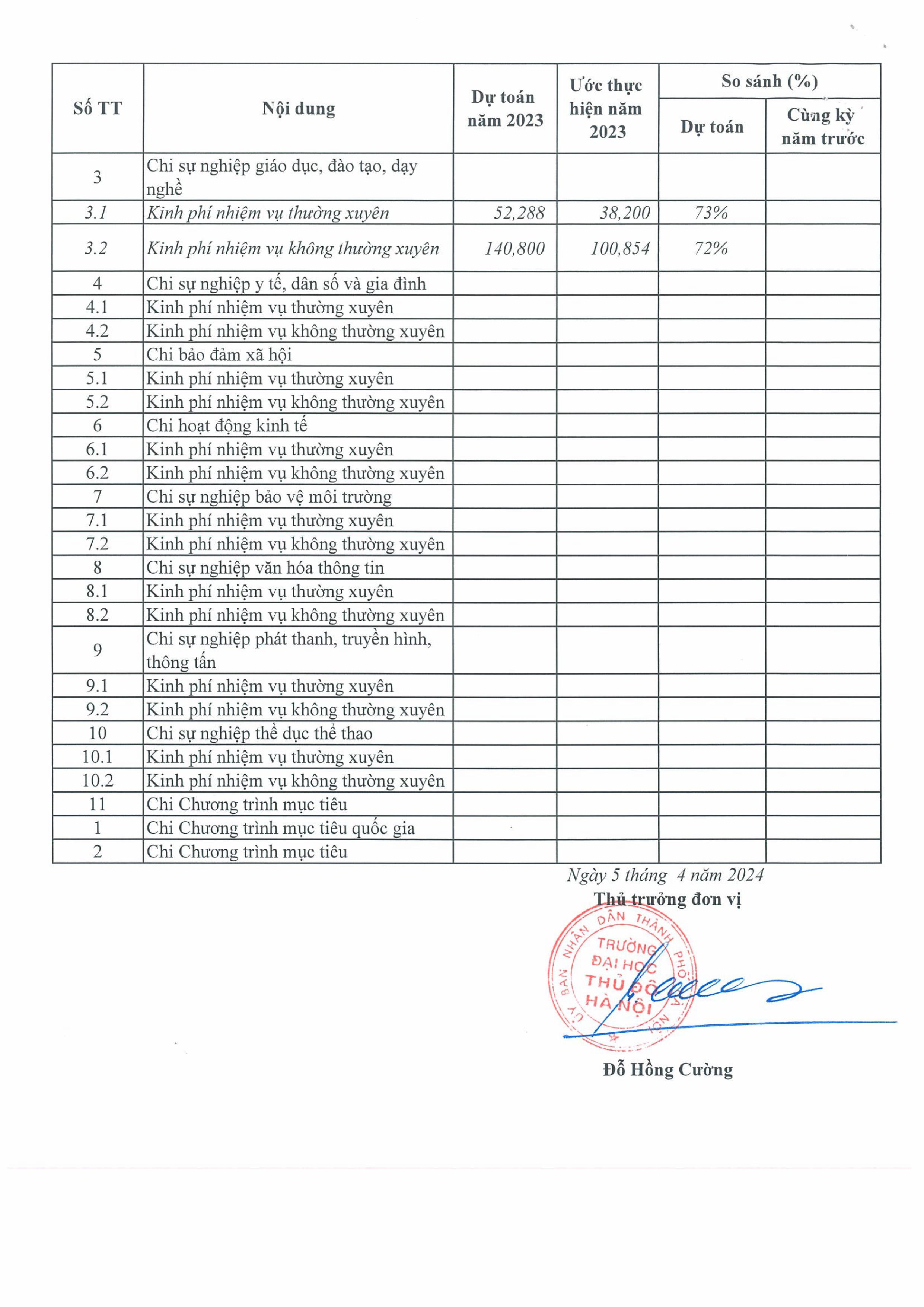 Công khai thực hiện dự toán thu - chi ngân sách năm 2023