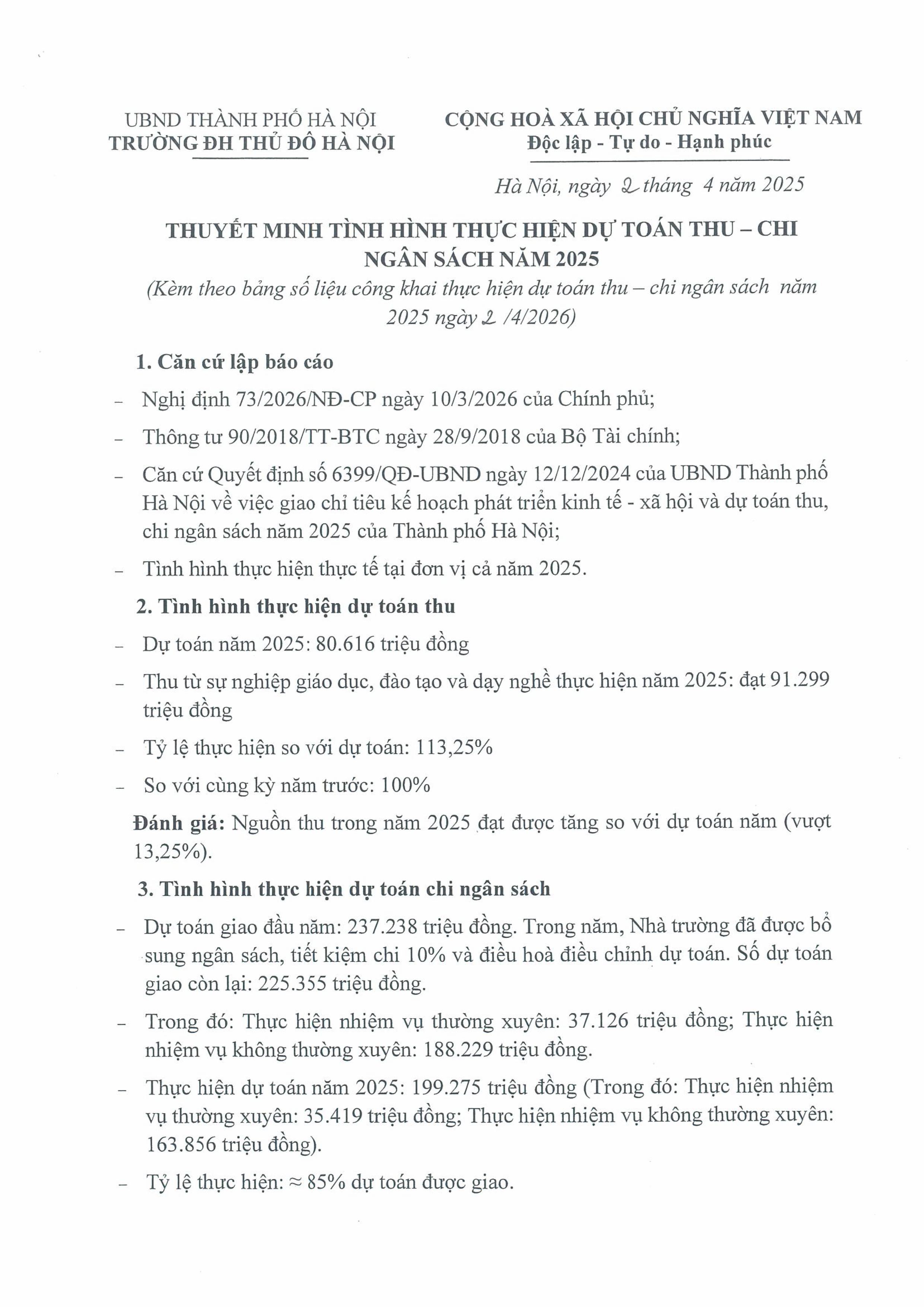 Công khai thực hiện dự toán thu - chi ngân sách năm 2025