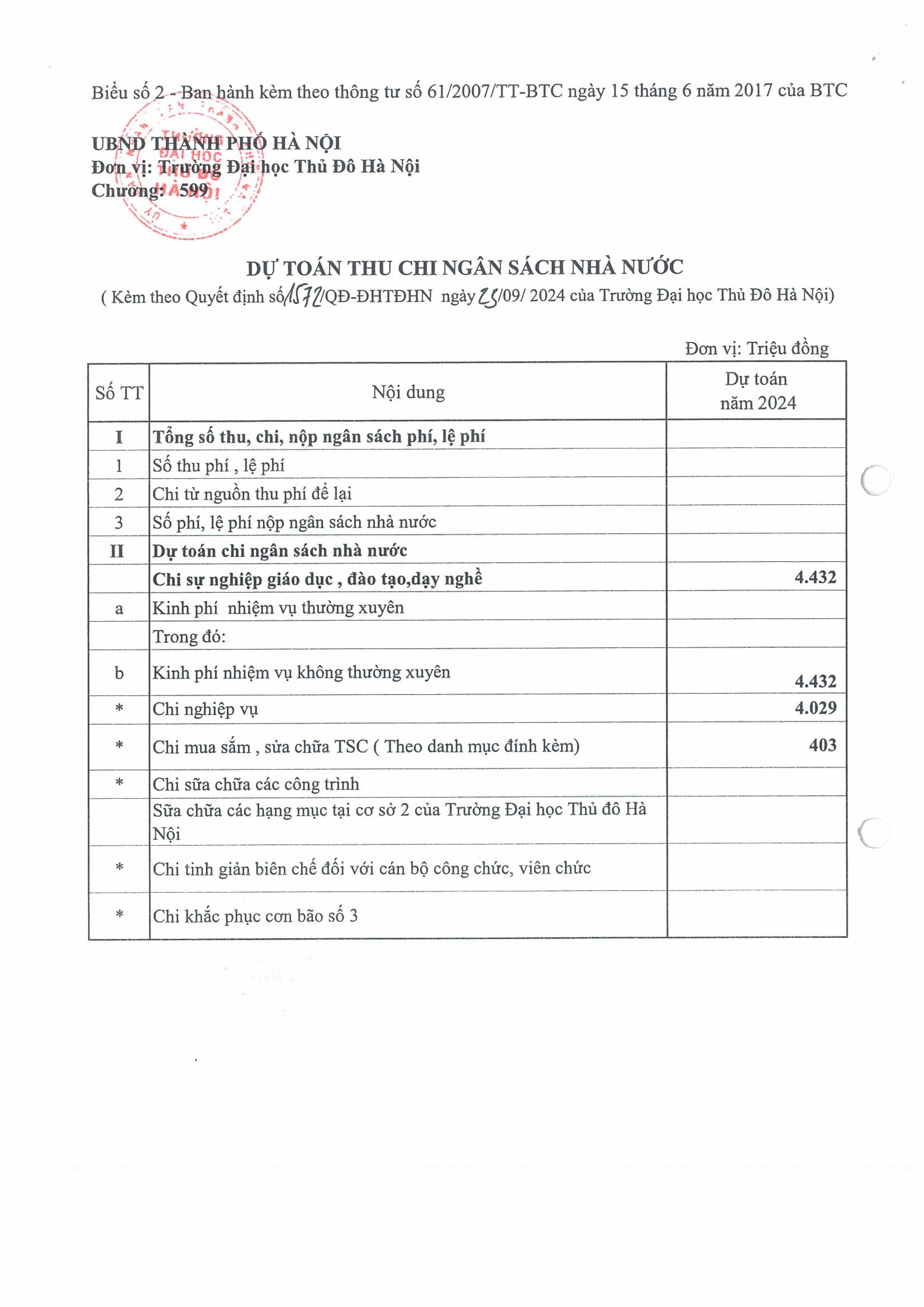 Đề án tuyển sinh trường Đại học Thủ đô Hà Nội 2024