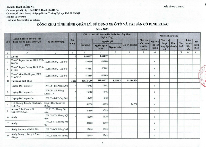 Công khai tình hình quản lý, sử dụng xe ô tô và tài sản cố định khác