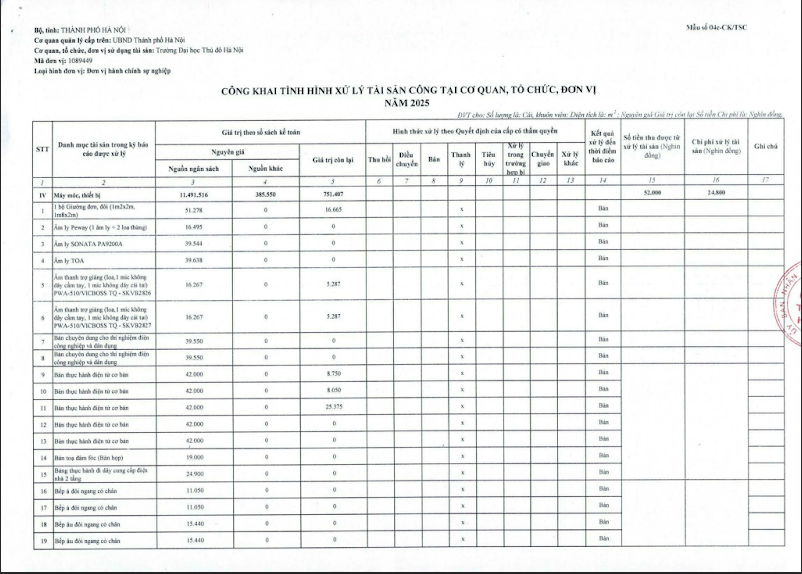 Công khai tình hình xử lý tài sản công tại cơ quan, tổ chức, đơn vị năm 2025
