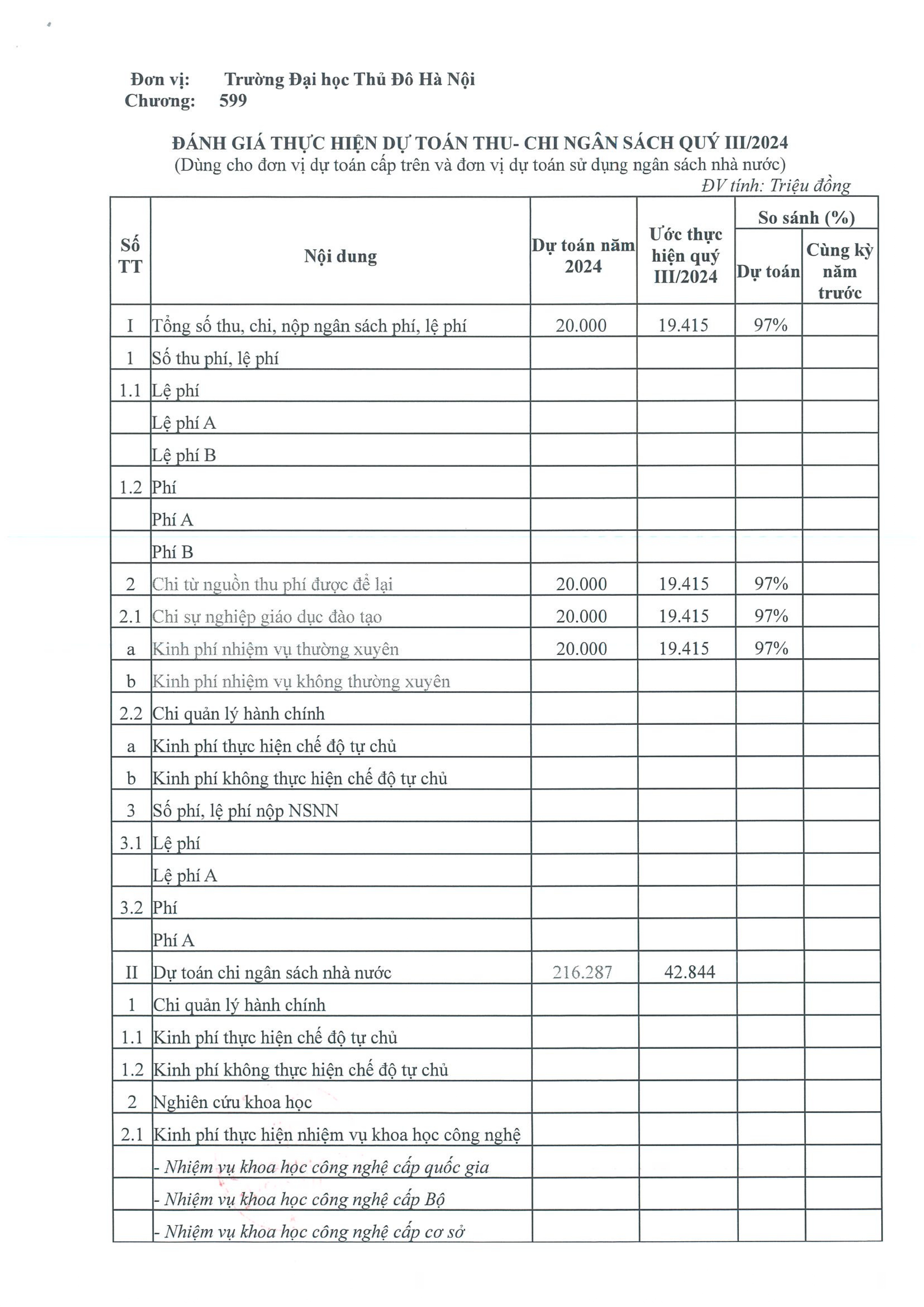 Đề án tuyển sinh trường Đại học Thủ đô Hà Nội 2024