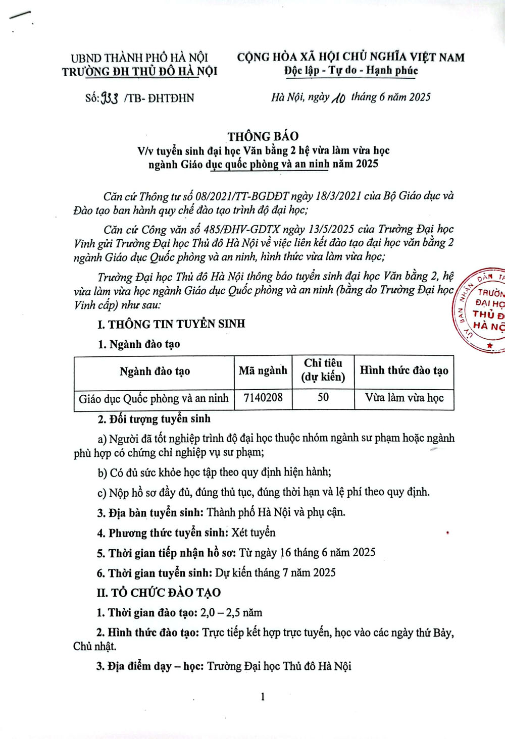 Announcement on Admission for the Second Degree Undergraduate Program (Part-Time Study) in National Defense and Security Education in 2025
