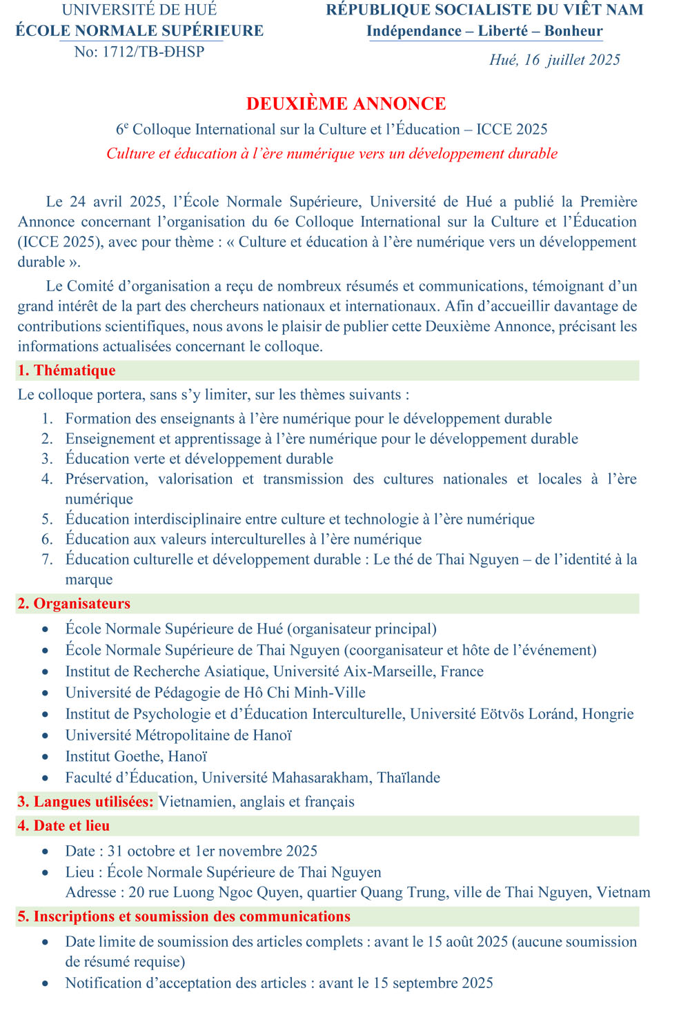 Second announcement on the 6th International Conference on Culture and Education - ICCE 2025