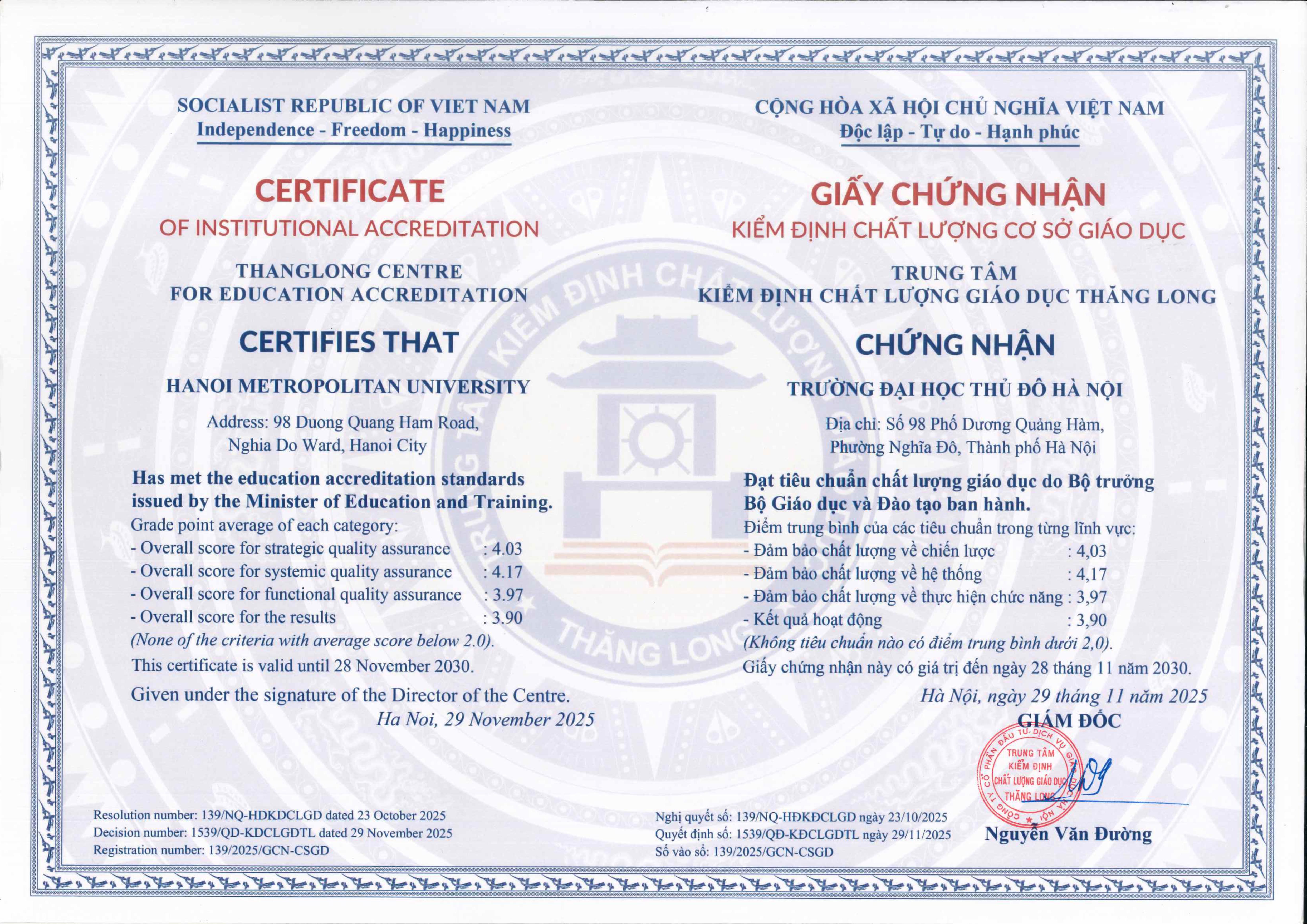 4. Giấy chứng nhận kiểm định chất lượng chương trình đào tạo ngành Quản trị khách sạn