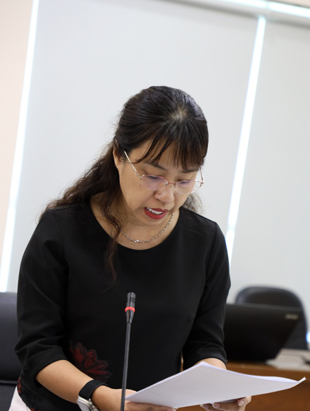 Hiệu trưởng Nguyễn Vũ Bích Hiền báo cáo kết quả hoạt động giữa nhiệm kỳ