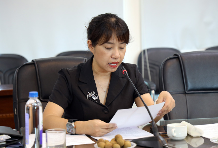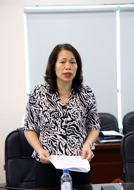 Hiệu trưởng Trường Đại học Thủ đô Hà Nội Nguyễn Vũ Bích Hiền trình bày đề án giới thiệu nhân sự