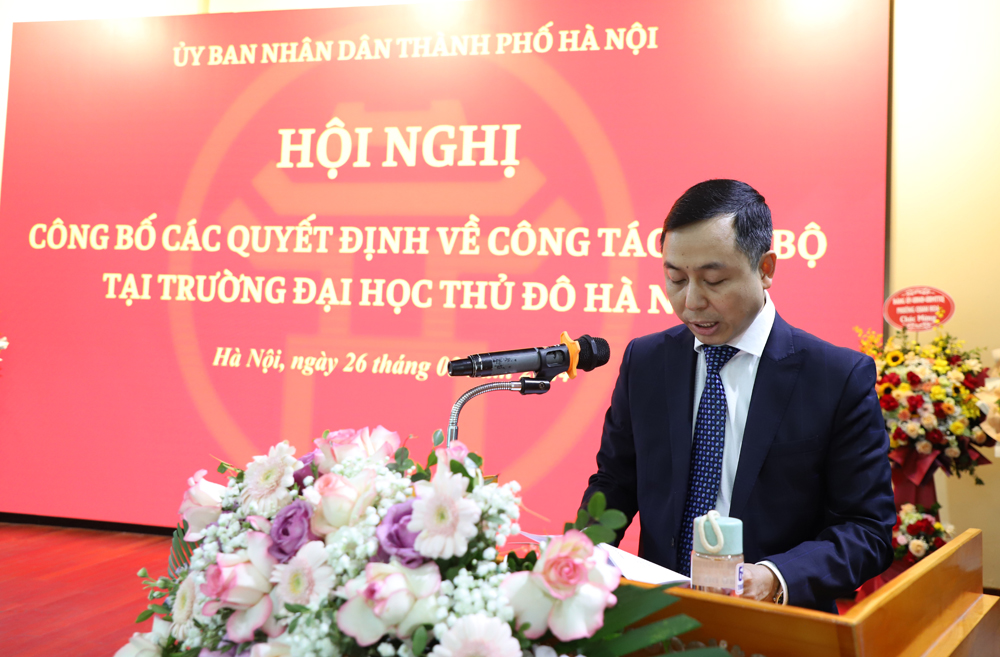 Tại Hội nghị, Phó Chủ tịch UBND Thành phố Hà Nội Vũ Thu Hà đã trao Quyết định số 1592/QĐ-UBND về việc điều động viên chức và công nhận chức vụ Chủ tịch Hội đồng trường Trường Đại học Thủ đô Hà Nội nhiệm kỳ 2020 - 2025 đối với PGS.TS. Nguyễn Anh Tuấn, Phó Giám đốc Sở Khoa học và Công nghệ Thành phố Hà Nội; trao Quyết định số 1591/QĐ-UBND về việc miễn nhiệm chức vụ Chủ tịch Hội đồng trường Trường Đại học Thủ đô Hà Nội nhiệm kỳ 2020 - 2025 và công nhận Hiệu trưởng Trường Đại học Thủ đô Hà Nội đối với TS. Đỗ Hồng Cường, Bí thư Đảng ủy.