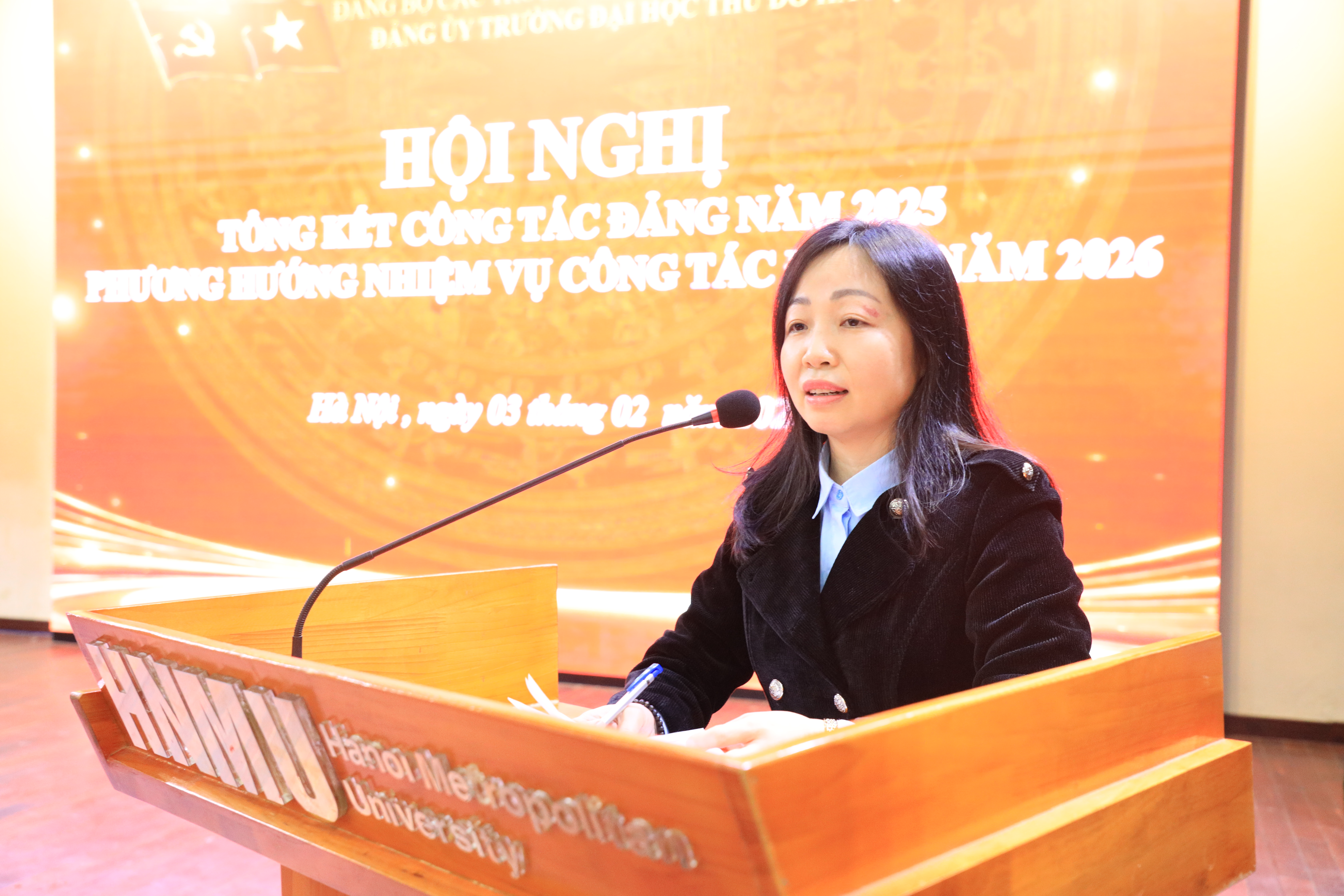Phát biểu chỉ đạo tại Hội nghị Tổng kết công tác Đảng năm 2025, triển khai phương hướng nhiệm vụ năm 2026, TS. Trần Anh Tuấn, Bí thư Đảng ủy Trường Đại học Thủ đô Hà Nội nhấn mạnh một số nhiệm vụ trọng tâm trong năm 2026, trong đó tập trung tiếp tục nâng cao chất lượng công tác giáo dục chính trị tư tưởng; đổi mới phương thức lãnh đạo của Đảng ủy theo hướng khoa học, hiệu quả, sát thực tiễn; tăng cường công tác kiểm tra, giám sát, giữ vững kỷ cương, kỷ luật của Đảng; đồng thời gắn chặt công tác xây dựng Đảng với thực hiện nhiệm vụ chuyên môn, đẩy mạnh chuyển đổi số và thúc đẩy đổi mới sáng tạo trong giáo dục đại học.