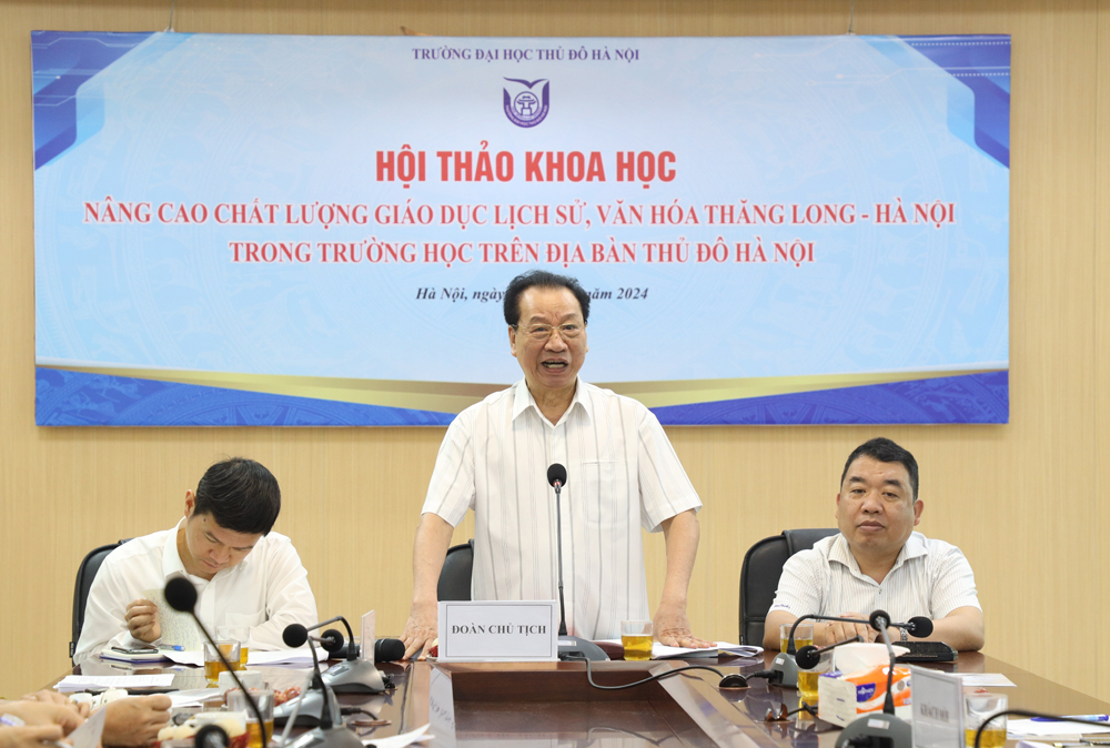 Phát biểu khai mạc Hội thảo, PGS.TS. Nguyễn Anh Tuấn, Chủ tịch Hội đồng trường Trường Đại học Thủ đô Hà Nội cho biết, trong Chương trình giáo dục phổ thông 2006 cũng như Chương trình giáo dục phổ thông 2018, giáo dục lịch sử, văn hóa là một trong những nội dung quan trọng của Chương trình. Đối với Thủ đô Hà Nội, nội dung giáo dục lịch sử, văn hóa Thăng Long – Hà Nội có ý nghĩa rất lớn, góp phần giúp học sinh Thủ đô hiểu được các giá trị lịch sử, văn hóa, khoa học của các di tích lịch sử, văn hóa Thủ đô và đất nước. Bản sắc văn hóa, lịch sử dân tộc được coi là hồn cốt của mỗi quốc gia.
