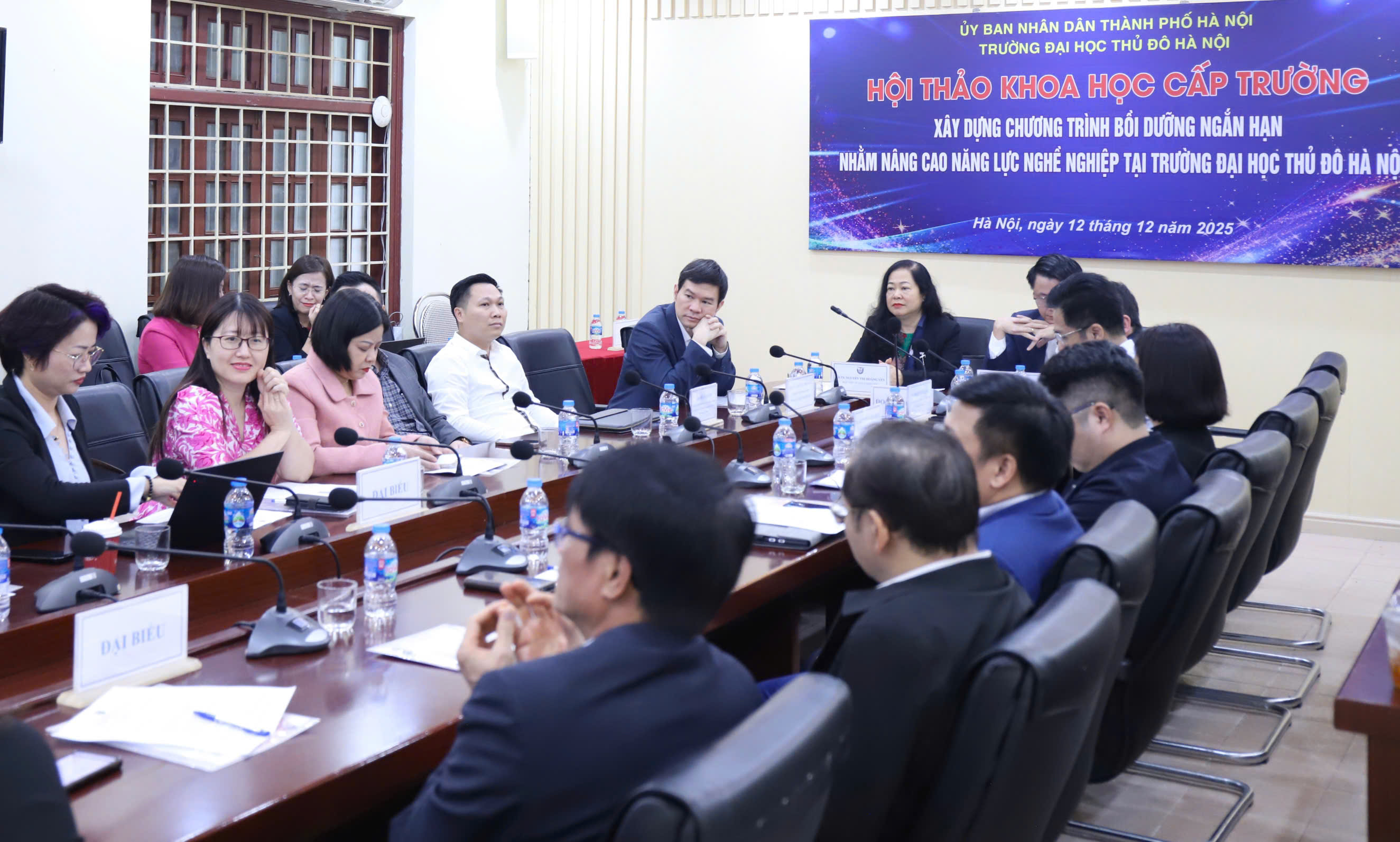 Chiều ngày 12/12, Trường Đại học Thủ đô Hà Nội đã tổ chức Hội thảo khoa học với chủ đề “Xây dựng chương trình bồi dưỡng ngắn hạn nhằm nâng cao năng lực nghề nghiệp tại Trường Đại học Thủ đô Hà Nội”. Đây là hoạt động có ý nghĩa thiết thực trong bối cảnh ngành Giáo dục đang đẩy mạnh đổi mới căn bản – toàn diện, tăng cường chuyển đổi số và phát triển nguồn nhân lực chất lượng cao.