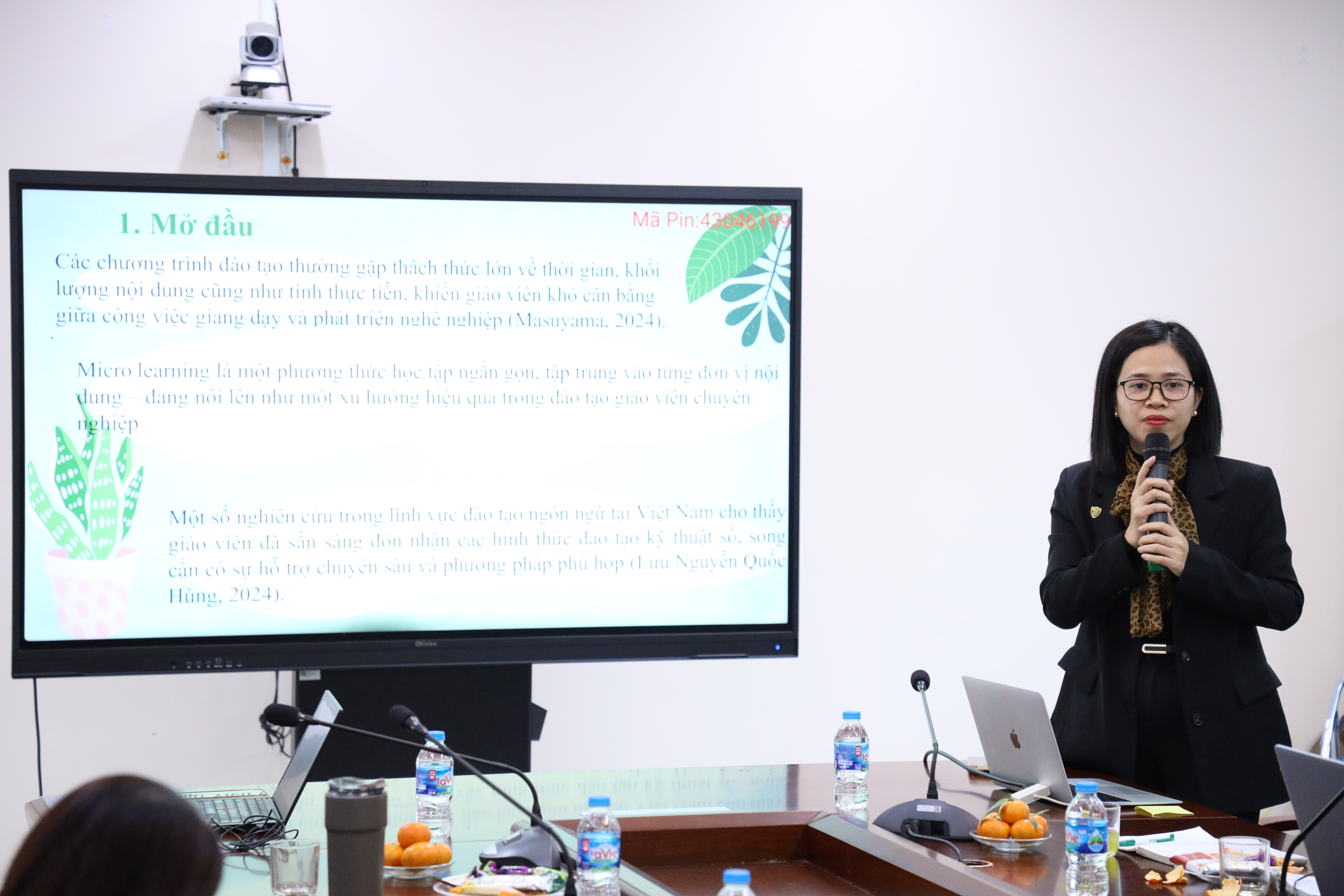 TS. Nguyễn Tiến Đà trình bày báo cáo “Microlearning trong bối cảnh giáo dục hiện đại: Một phân tích tổng hợp”.