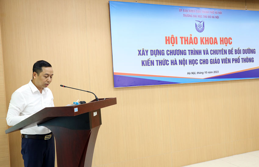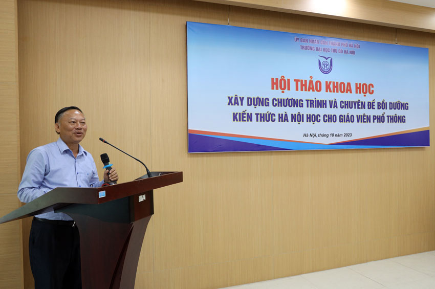 Phát biểu tại Hội thảo, TS. Đỗ Hồng Cường, Bí thư Đảng ủy, Chủ tịch Hội đồng trường Trường Đại học Thủ đô Hà Nội cho biết, Hội thảo là một trong chuỗi các hoạt động nhằm triển khai Đề án “Bồi dưỡng kiến thức Hà Nội học cho giáo viên phổ thông trên địa bàn Thành phố Hà Nội giai đoạn 2021-2025, định hướng đến năm 2030, tầm nhìn đến năm 2045” do UBND Thành phố Hà Nội ban hành.