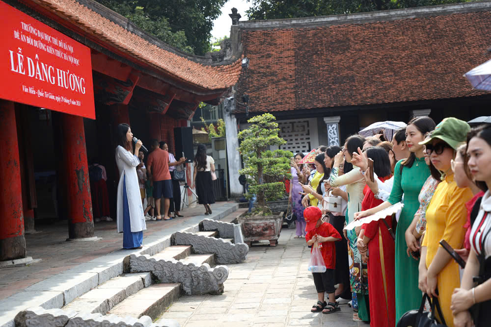 Ngày 29/9, hơn 3.000 giáo viên Hà Nội đã tham gia trải nghiệm thực tế chuyên môn tại 2 di tích văn hóa thế giới Văn Miếu Quốc Tử Giám và Hoàng thành Thăng Long. Đây là một phần nằm trong chương trình bồi dưỡng Hà Nội học của Đề án “Bồi dưỡng kiến thức Hà Nội học cho giáo viên phổ thông trên địa bàn Thành phố Hà Nội giai đoạn 2021 - 2025, định hướng đến năm 2030, tầm nhìn đến năm 2045” do Ban chuyên môn đề án Hà Nội học, Trường Đại học Thủ đô Hà Nội triển khai.
