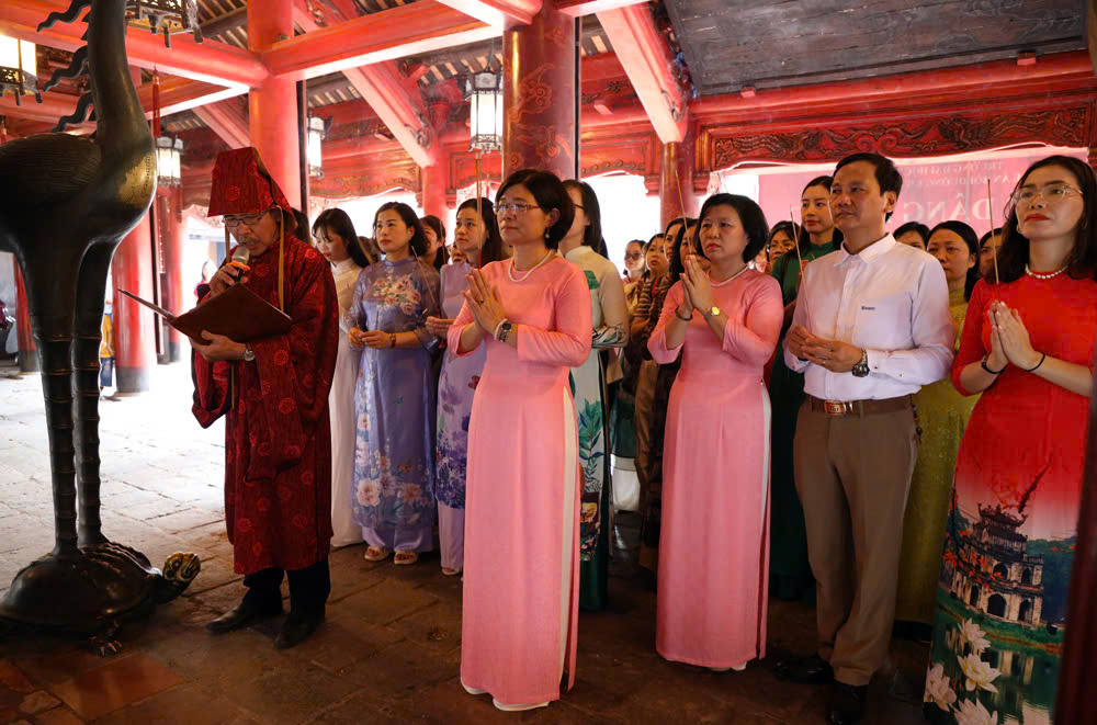 Hiệu trưởng Trường Đại học Thủ đô Hà Nội Đỗ Hồng Cường cùng Ban tổ chức dâng hương tại Hoàng Thành Thăng Long