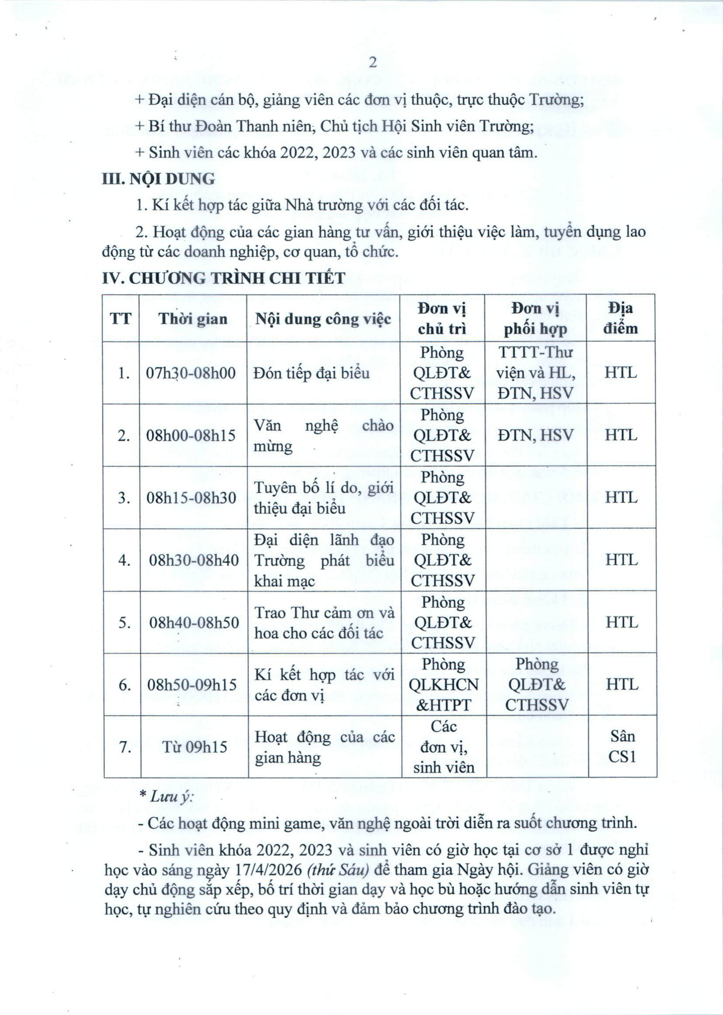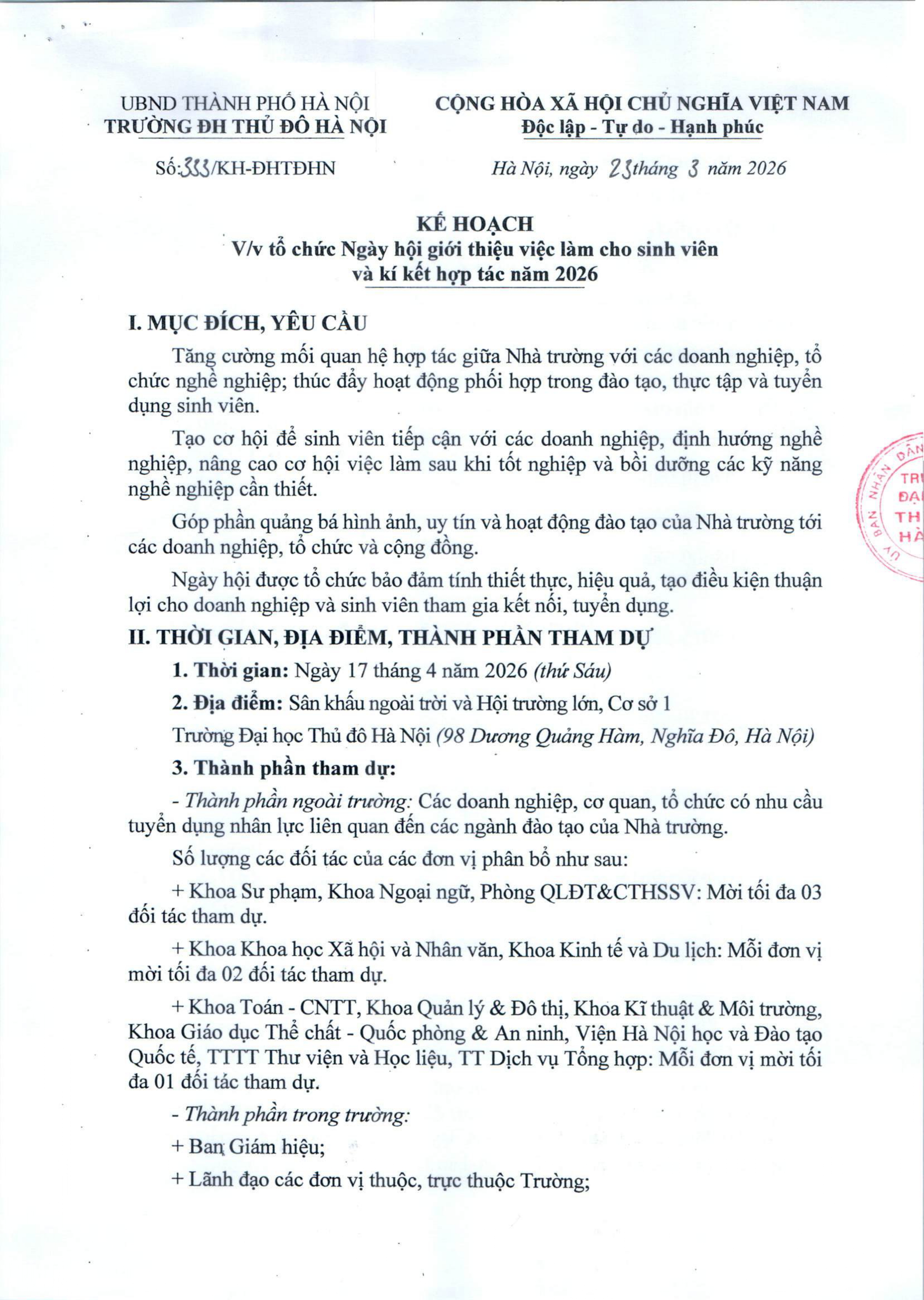 Kế hoạch tổ chức Ngày hội giới thiệu việc làm cho sinh viên và kí kết hợp tác năm 2026