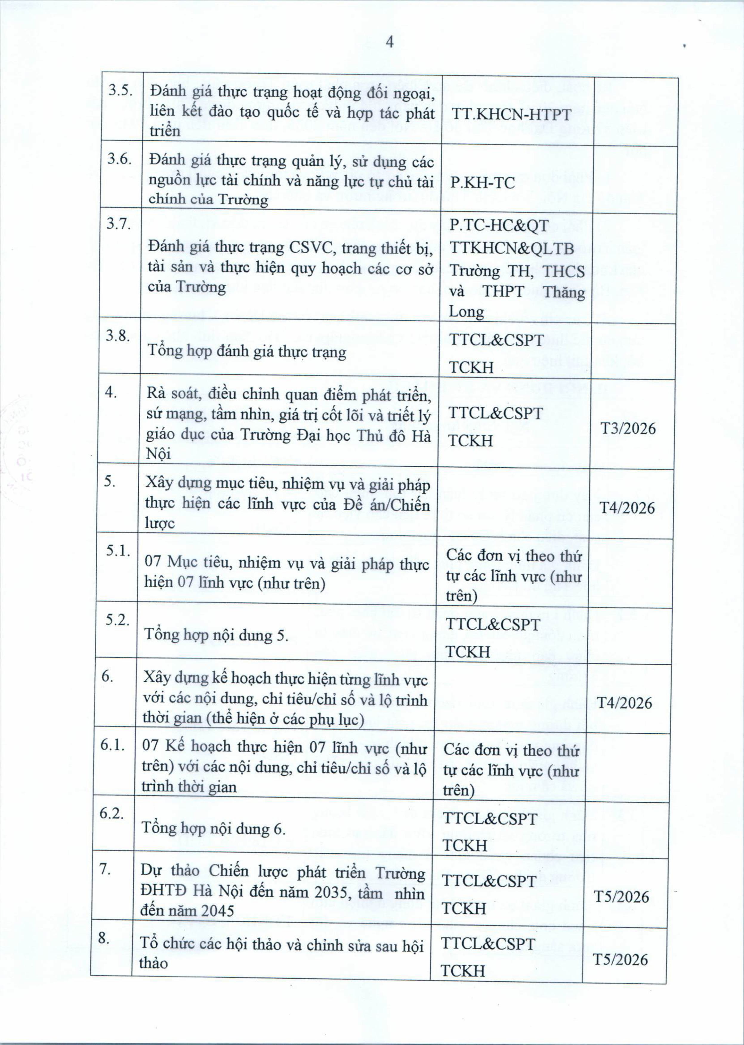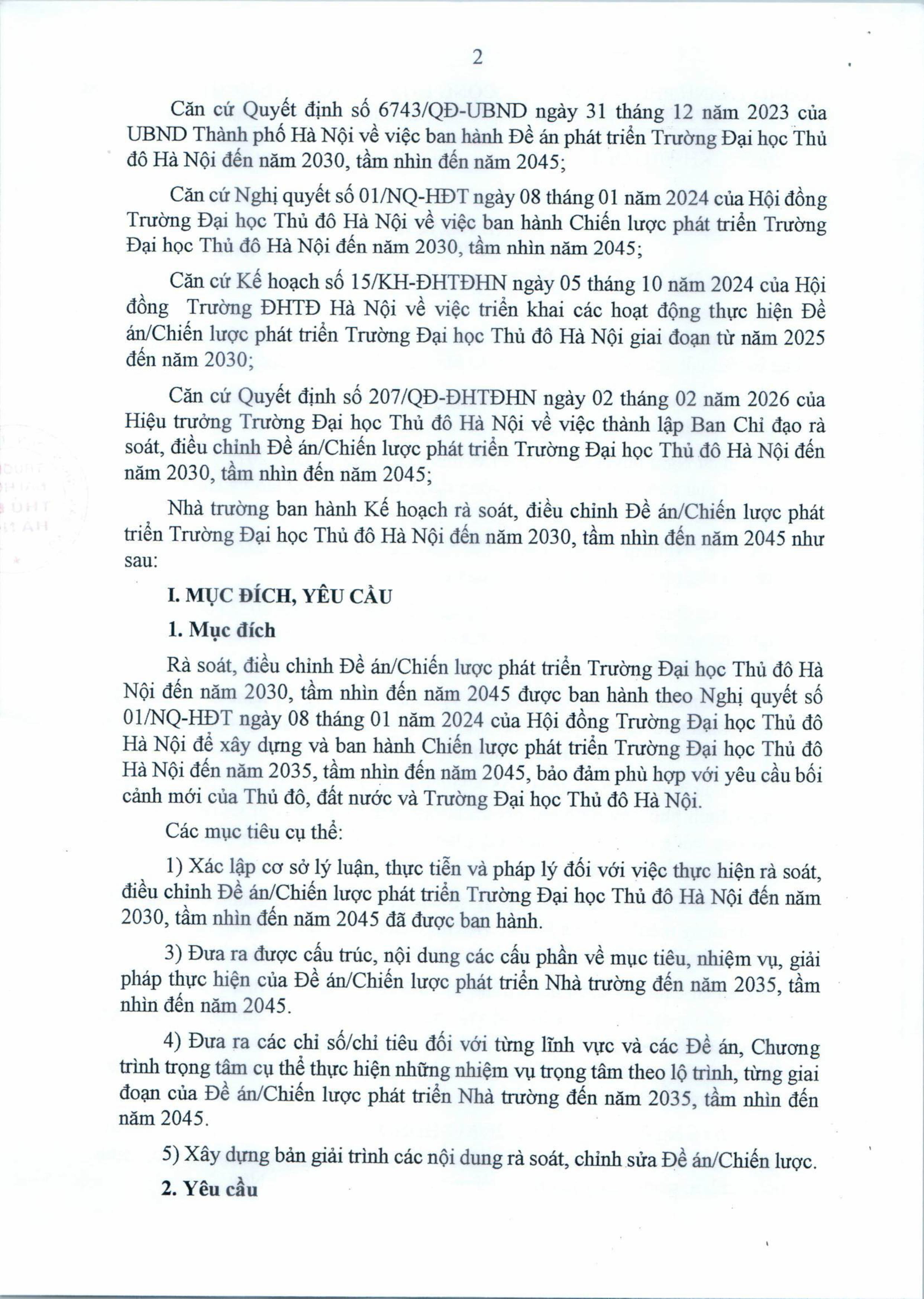 Kế hoạch rà soát, điều chỉnh Đề án/Chiến lược phát triển Trường Đại học Thủ đô Hà Nội đến năm 2030, tầm nhìn đến năm 2045