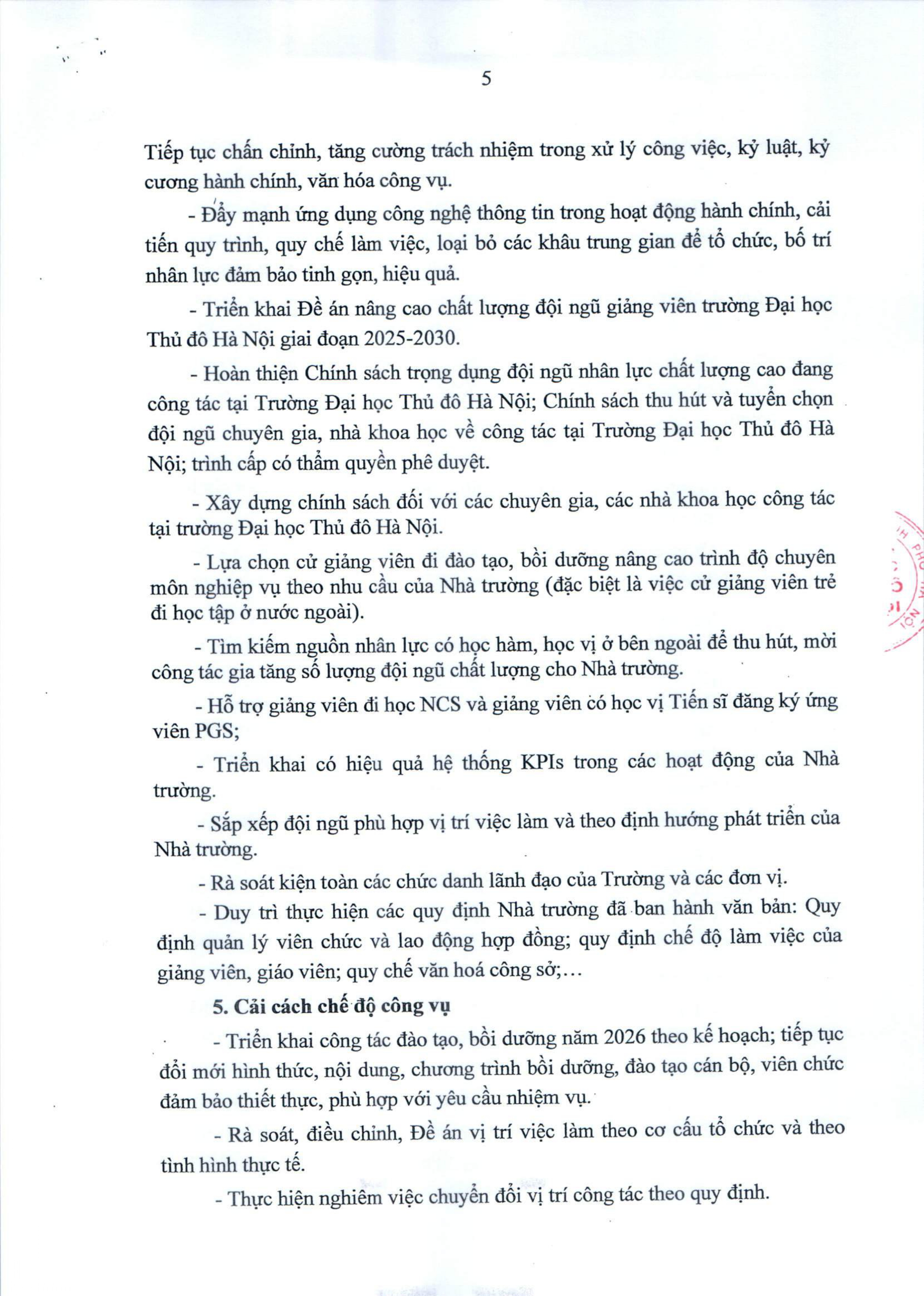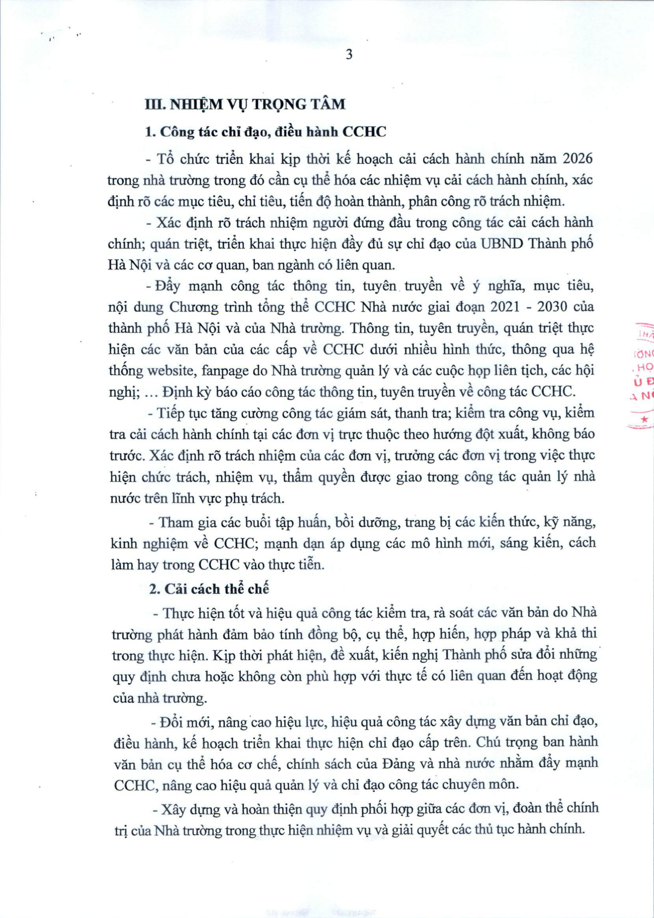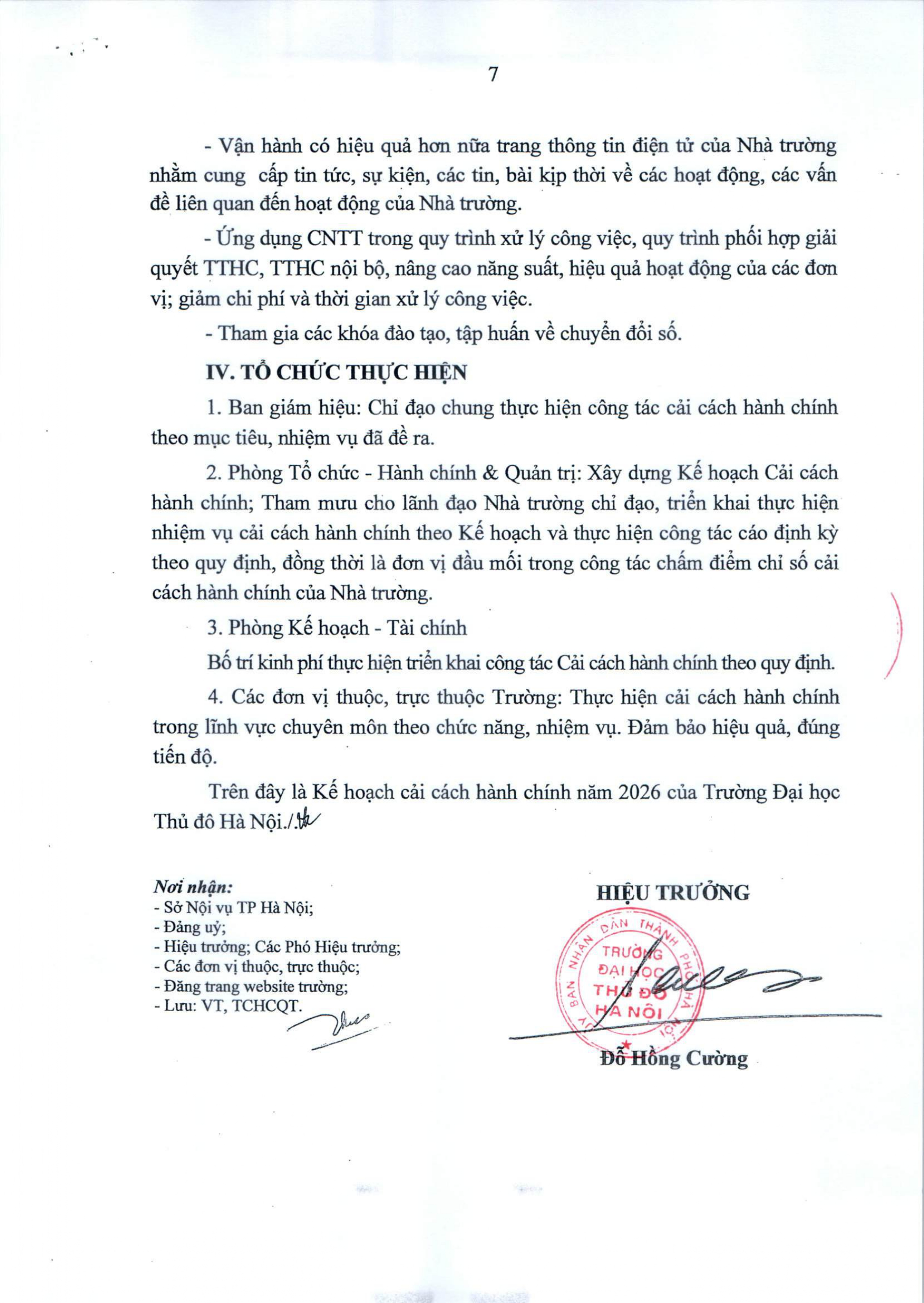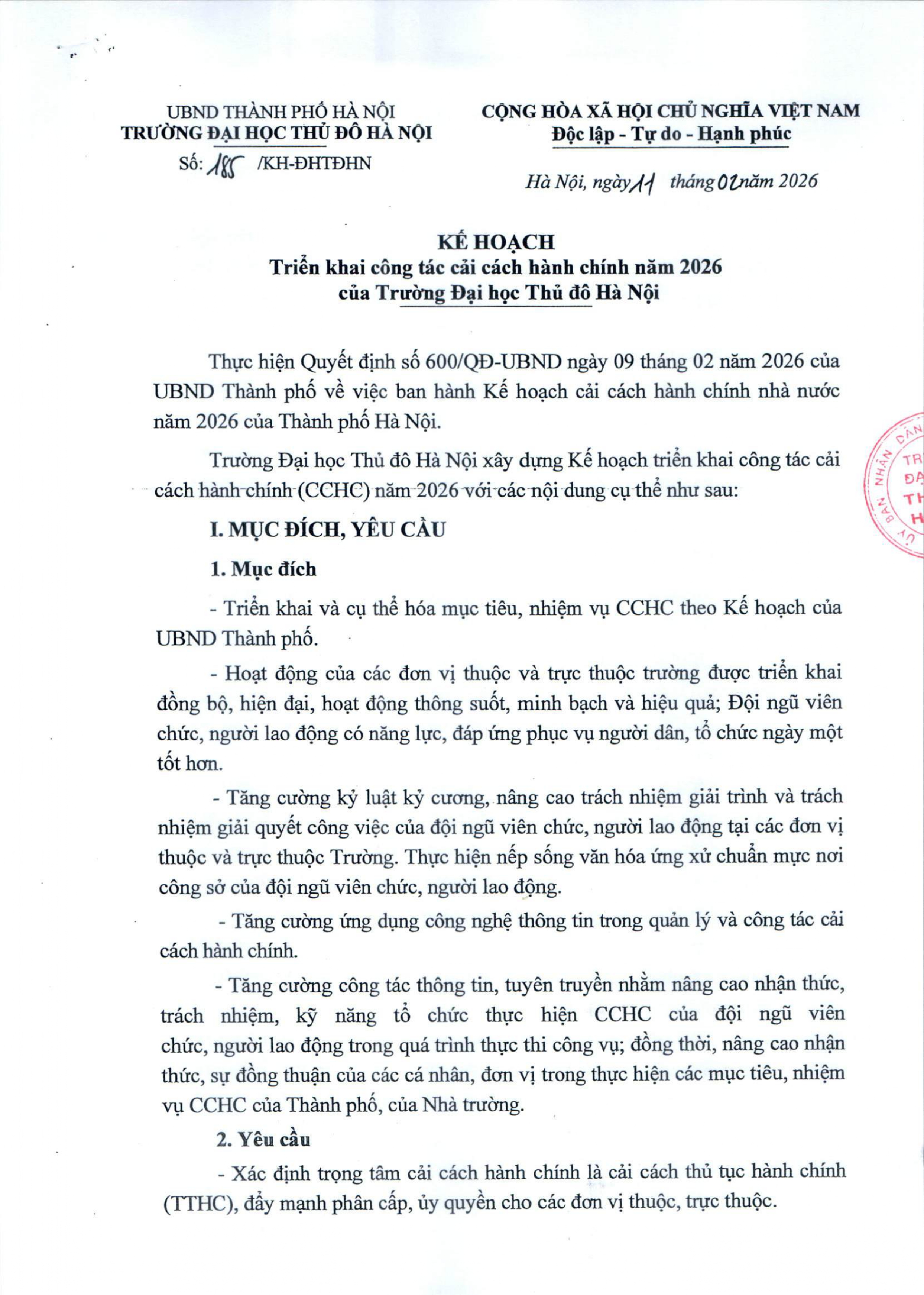 Kế hoạch triển khai công tác cải cách hành chính năm 2026 của Trường Đại học Thủ đô Hà Nội