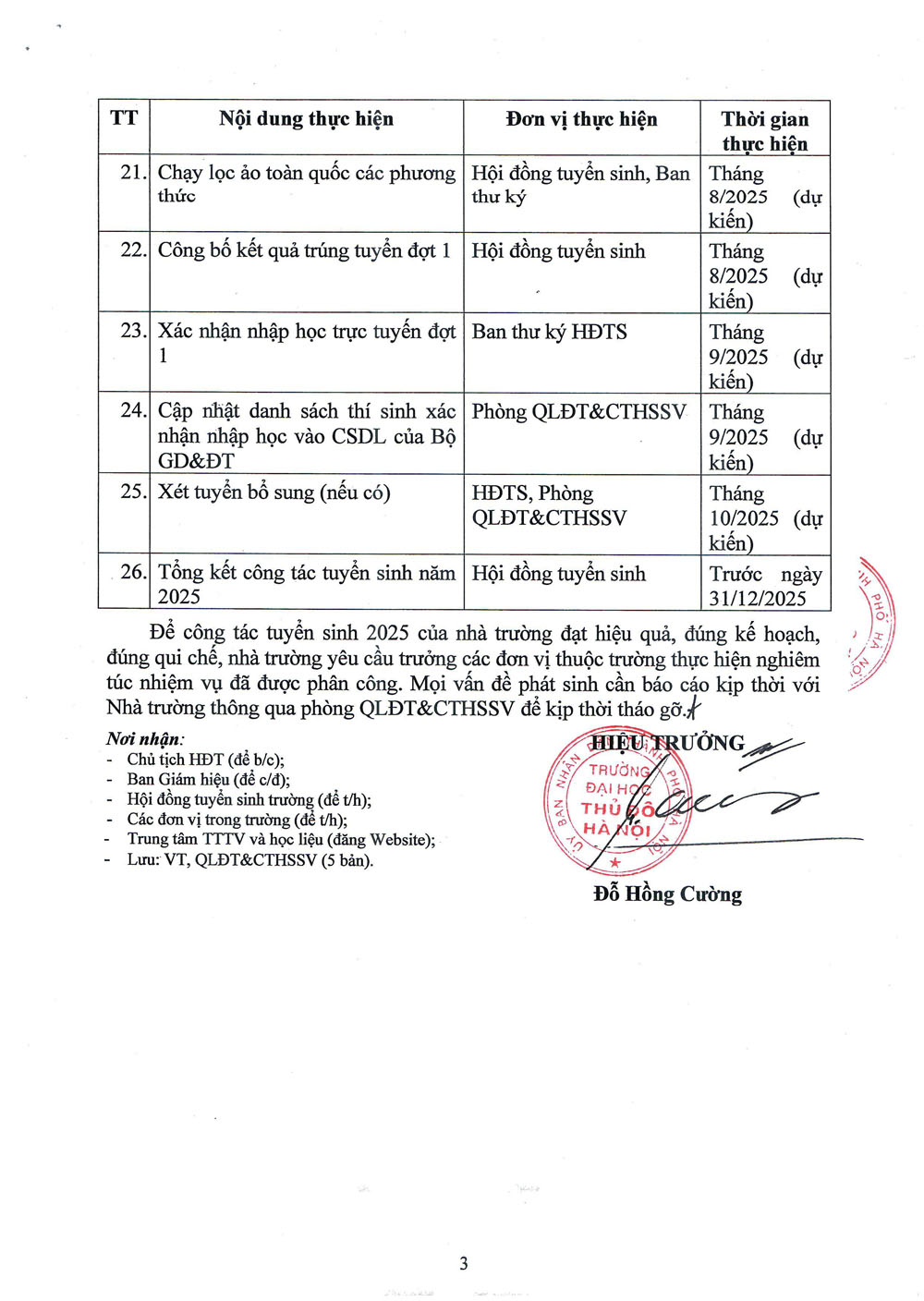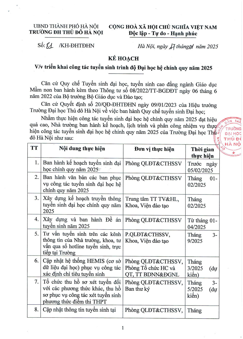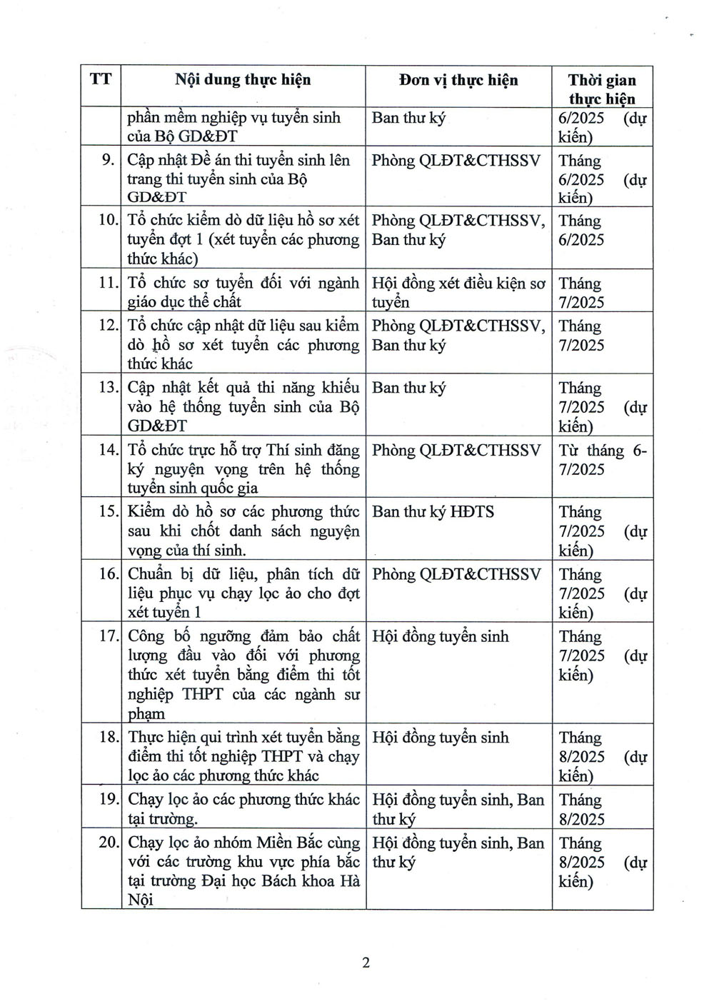 Kế hoạch triển khai công tác tuyển sinh trình độ Đại học hệ chính quy năm 2025