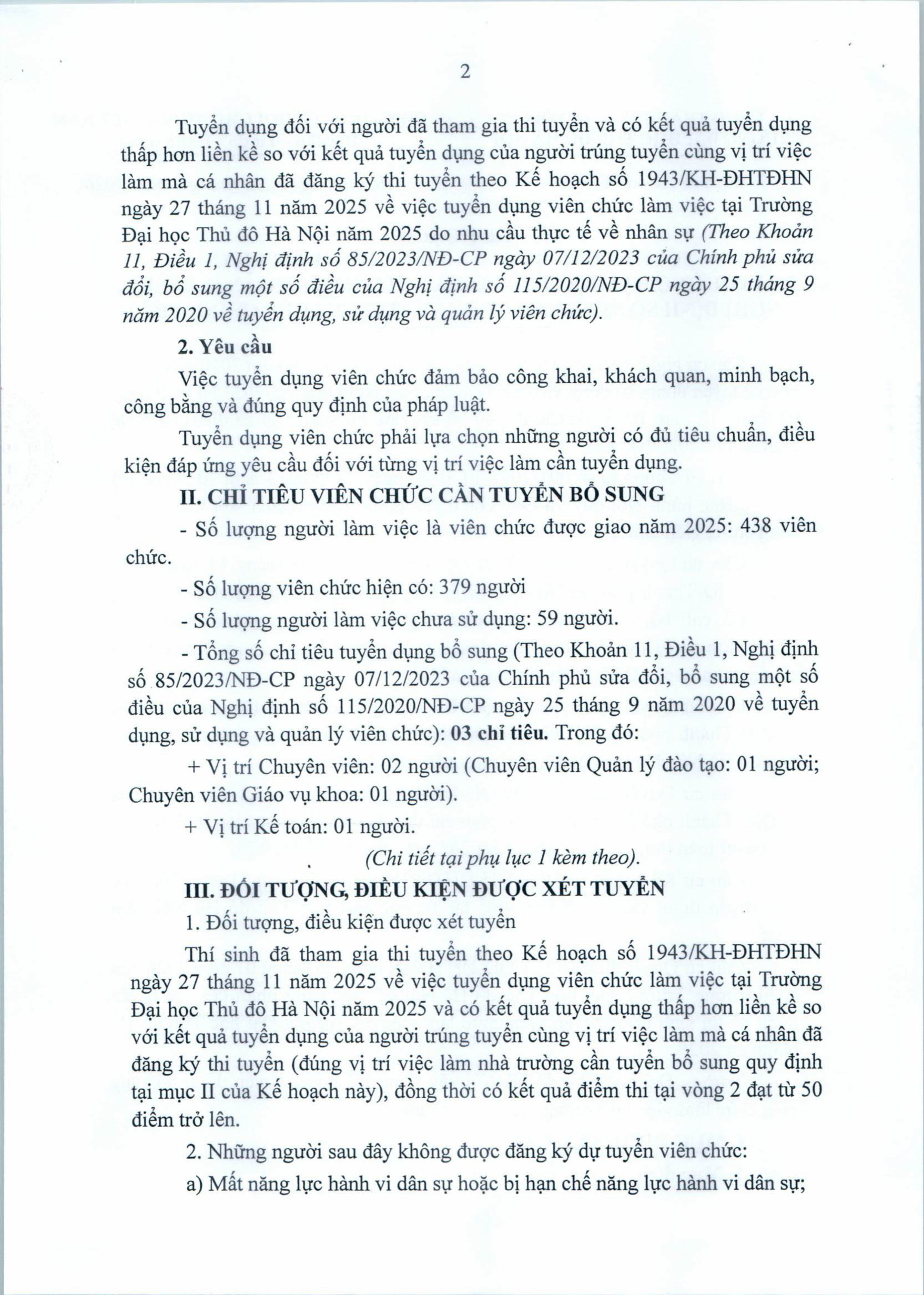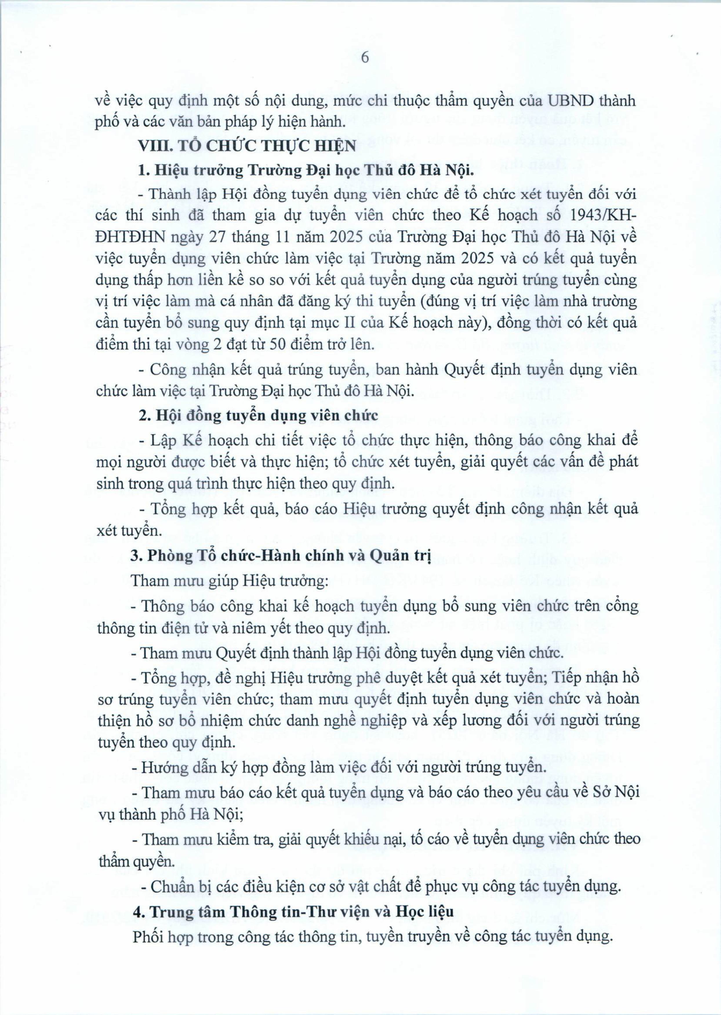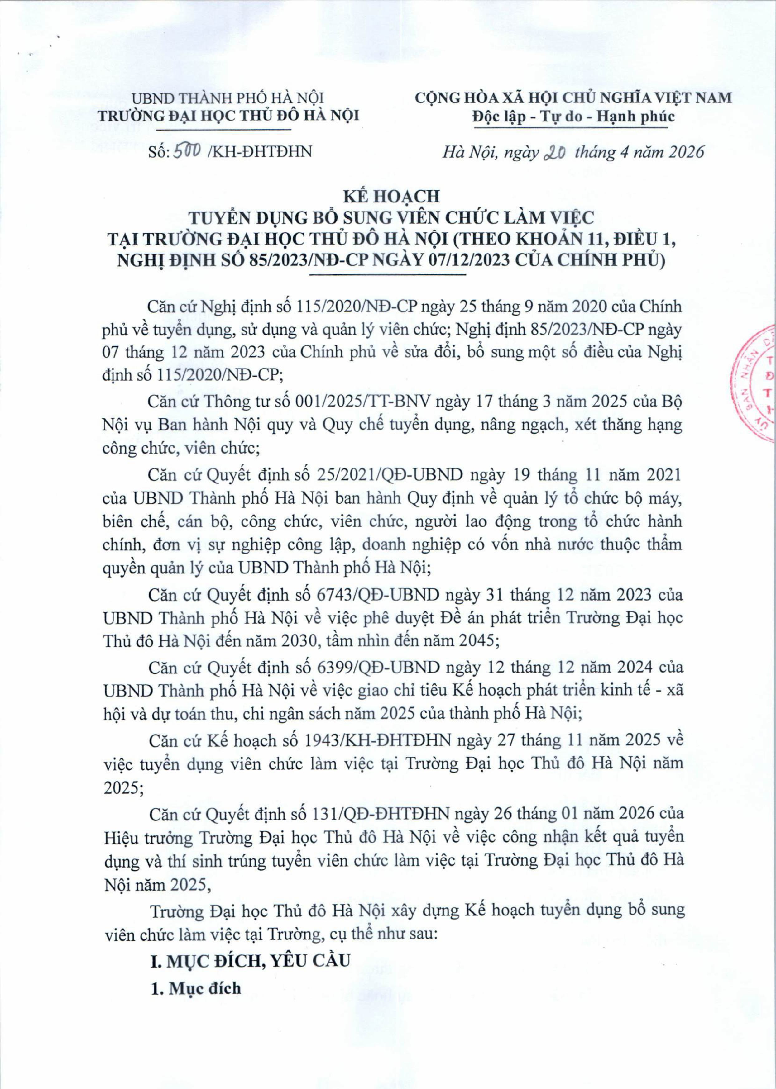 Kế hoạch tuyển dụng bổ sung viên chức làm việc tại Trường Đại học Thủ đô Hà Nội