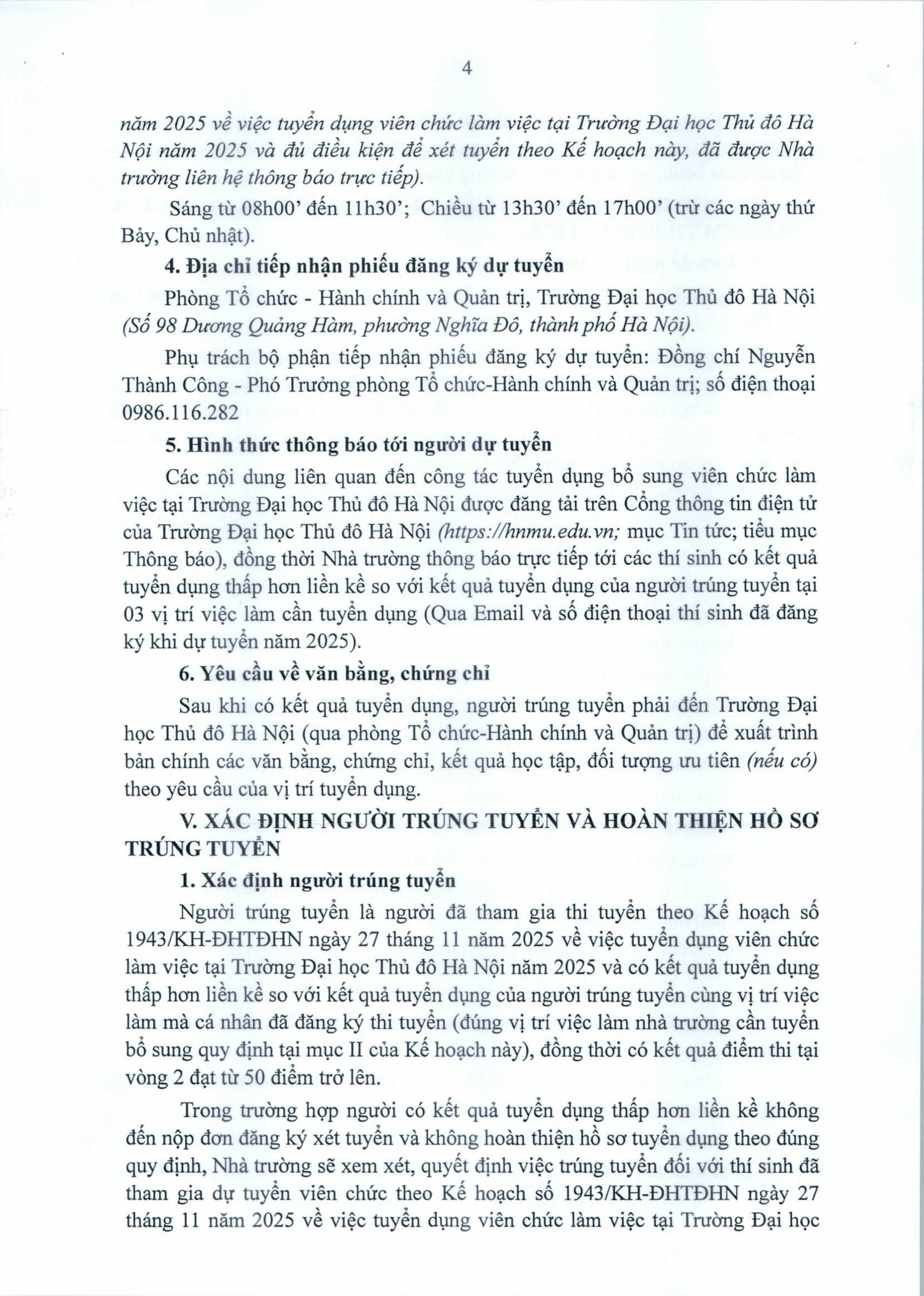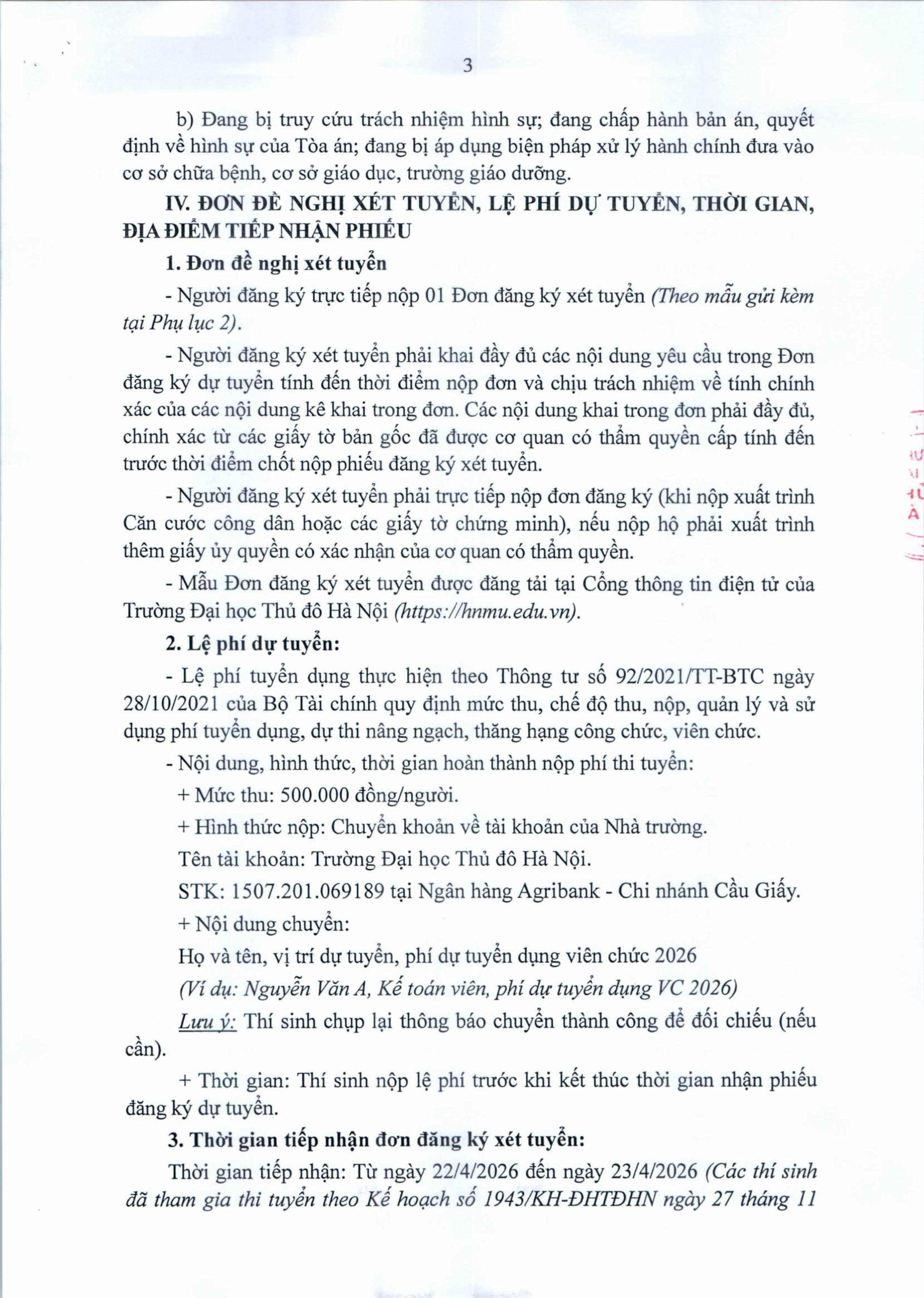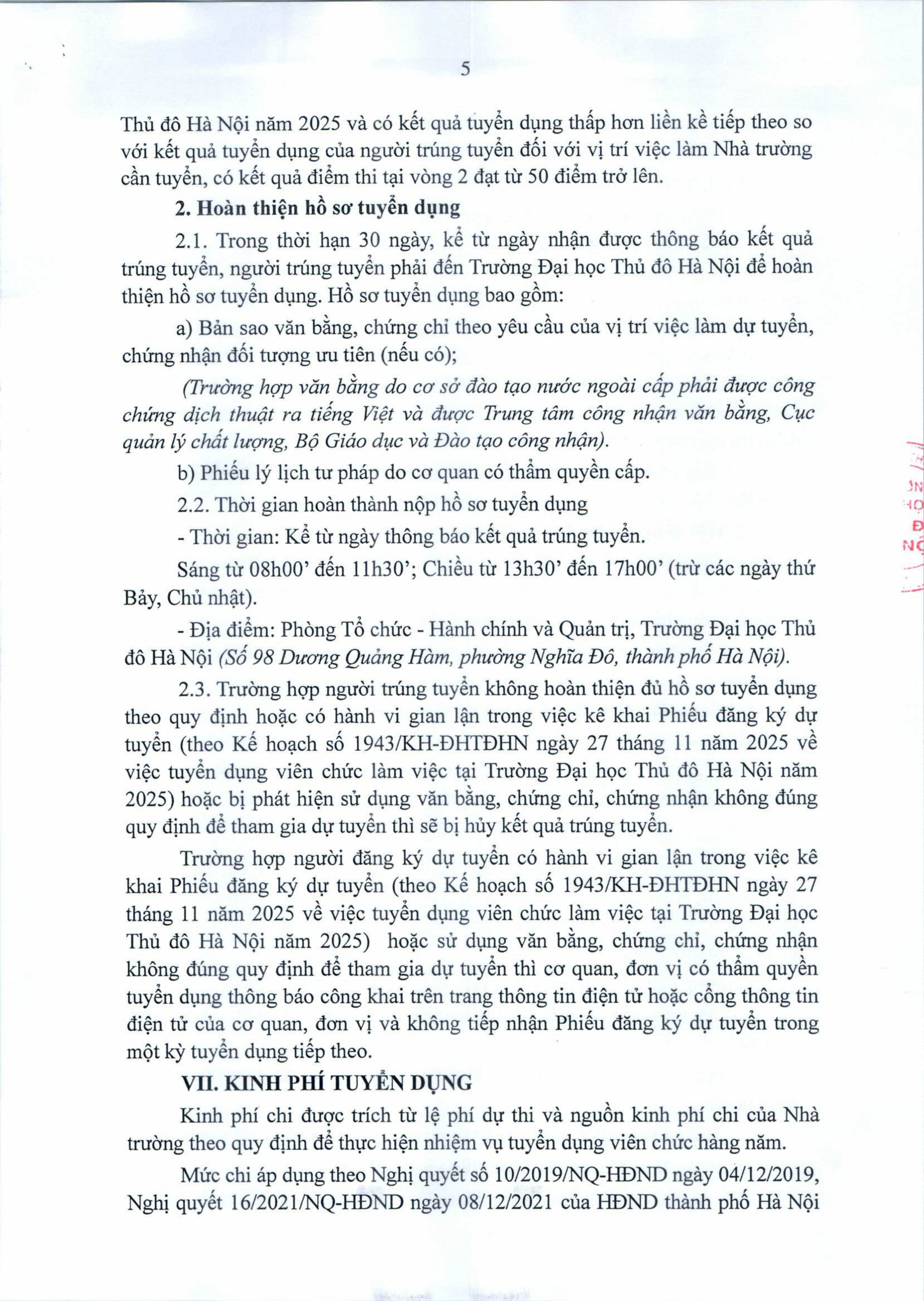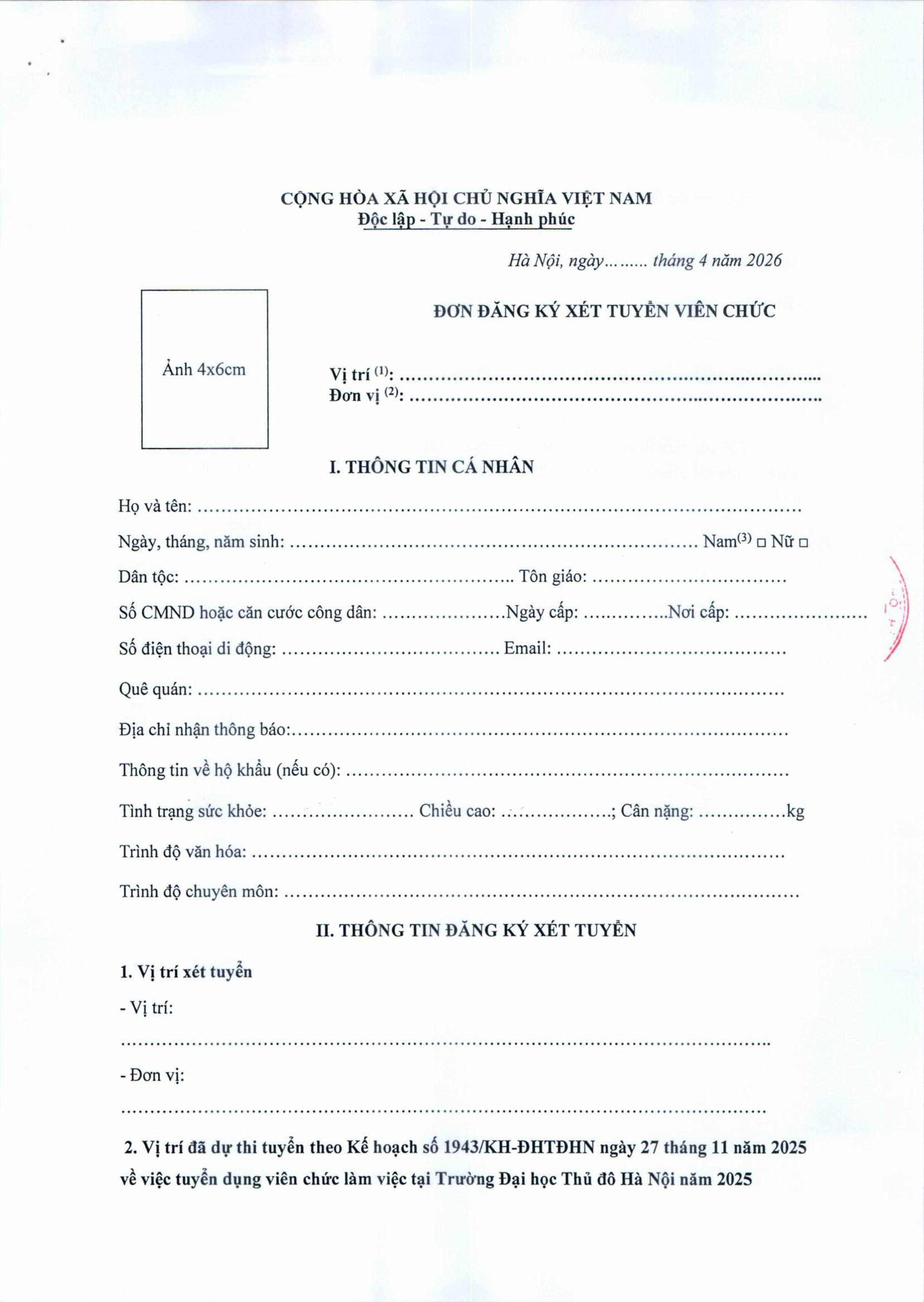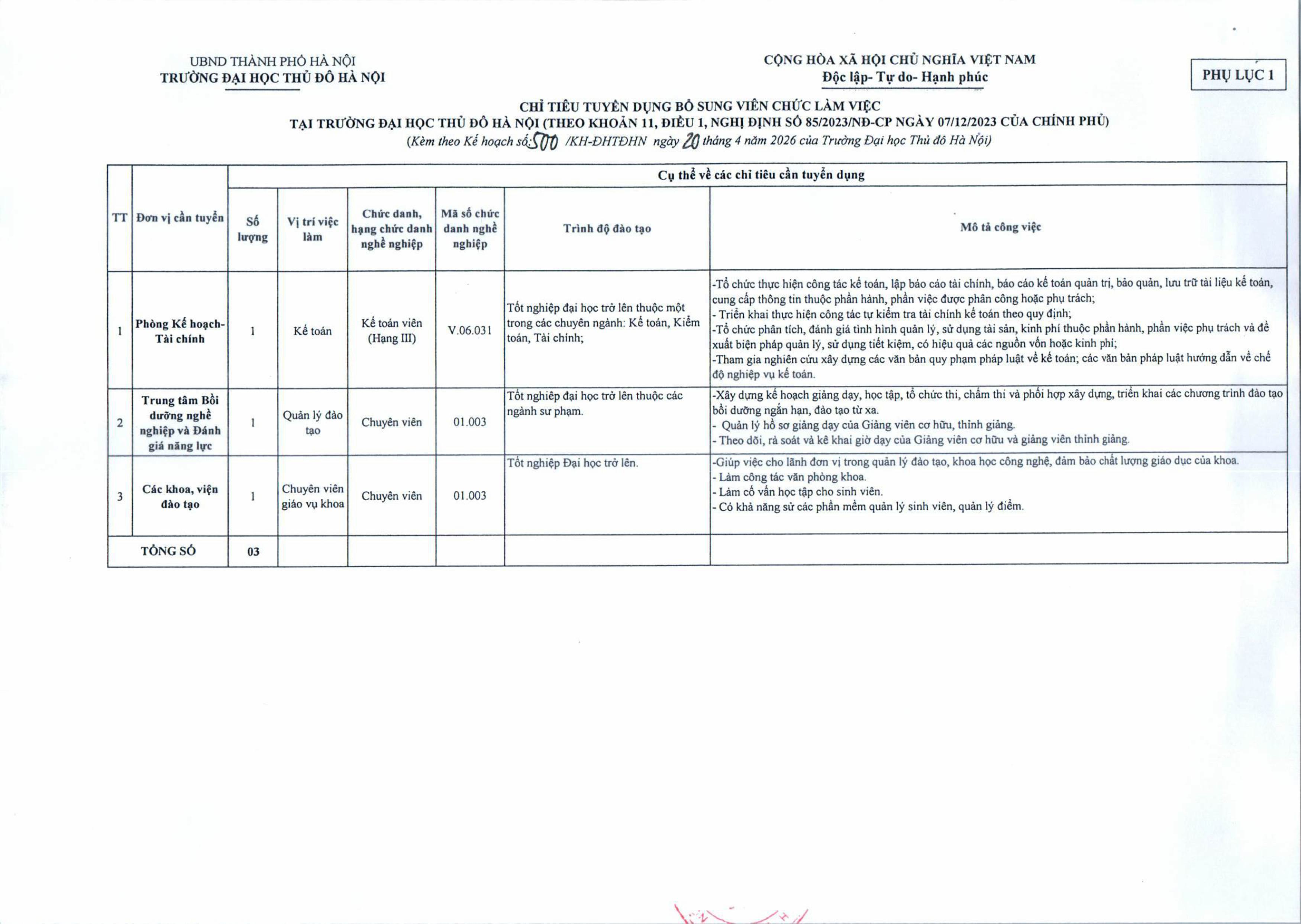 Thông báo Tuyển dụng bổ sung viên chức làm việc tại Trường Đại học Thủ đô Hà Nội