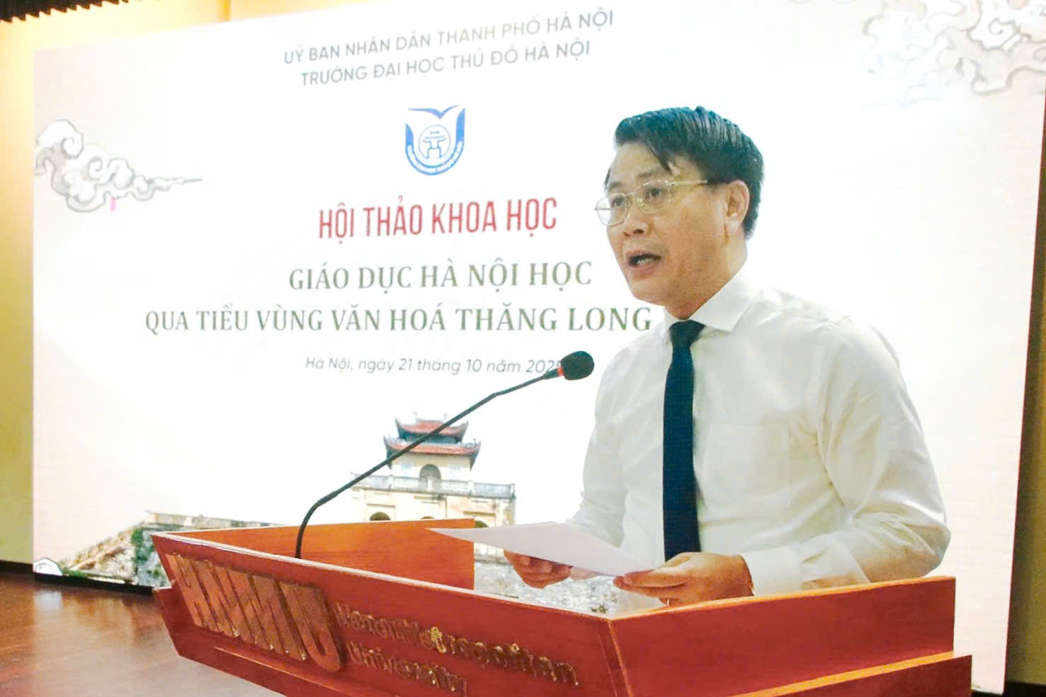 Phát biểu tại hội thảo, PGS.TS. Nguyễn Văn Tuân – Phó Hiệu trưởng Trường Đại học Thủ đô Hà Nội – nhấn mạnh hội thảo khoa học “Giáo dục Hà Nội học qua tiểu vùng văn hóa Thăng Long – Hà Nội” không chỉ là một hoạt động chuyên môn thường niên, mà còn là sự kiện có ý nghĩa học thuật và thực tiễn sâu sắc, góp phần khẳng định vị thế và giá trị của môn Hà Nội học trong giáo dục đại học và phổ thông hiện nay. Trường Đại học Thủ đô Hà Nội, với sứ mệnh là cơ sở đào tạo, nghiên cứu và phát triển nguồn nhân lực chất lượng cao cho Thủ đô, nhà trường luôn coi Hà Nội học là một trong những chương trình mang tính đặc thù, phản ánh bản sắc và trách nhiệm trong việc gìn giữ, bồi đắp và lan tỏa các giá trị văn hóa Thăng Long – Hà Nội.