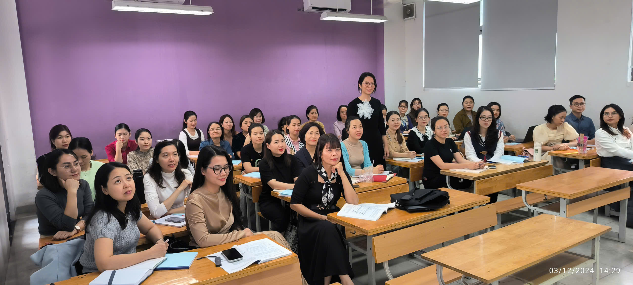 Phát biểu tại buổi lễ, bà Trần Thị Hương, Trưởng phòng Phòng Giáo dục và Đào tạo quận Tây Hồ khẳng định, đơn vị luôn coi trọng việc nâng cao chất lượng đội ngũ giáo viên – yếu tố quyết định sự thành công của các chính sách đổi mới giáo dục. Vì vậy, các chương trình bồi dưỡng như hôm nay được tổ chức không chỉ để cập nhật tri thức mới mà còn nhằm lan tỏa tinh thần đổi mới, sáng tạo đến từng cơ sở giáo dục trên địa bàn. Để khóa bồi dưỡng đạt hiệu quả cao, bà Trần Thị Hương đề nghị các thầy cô giáo tham gia khóa bồi dưỡng thực hiện nghiêm túc các quy định, tích cực trao đổi, thảo luận và thực hành, đồng thời hy vọng những kiến thức và kỹ năng mà thầy cô tiếp thu từ chương trình này sẽ được vận dụng một cách sáng tạo, mang lại những đổi mới tích cực trong công tác giảng dạy.