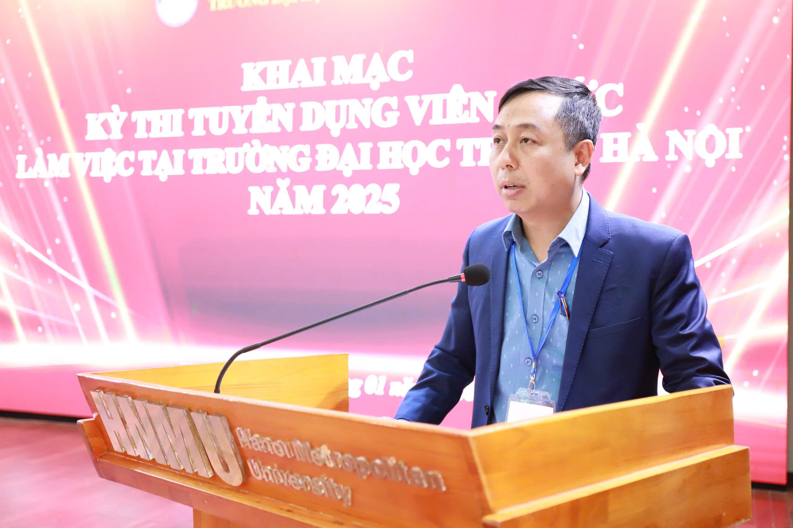 Phát biểu tại Lễ khai mạc, PGS. TS Đỗ Hồng Cường, Hiệu trưởng Trường Đại học Thủ đô Hà Nội, Chủ tịch Hội đồng tuyển dụng viên chức năm 2025, nhấn mạnh ý nghĩa quan trọng của công tác tuyển dụng trong việc xây dựng đội ngũ viên chức có phẩm chất chính trị, đạo đức nghề nghiệp, trình độ chuyên môn và năng lực công tác, đáp ứng yêu cầu phát triển của Nhà trường trong giai đoạn mới. Hiệu trưởng đề nghị Hội đồng tuyển dụng, Ban Giám sát và các bộ phận liên quan thực hiện nghiêm túc quy chế, bảo đảm kỳ thi diễn ra an toàn, khách quan, đúng quy định; đồng thời mong muốn các thí sinh phát huy tinh thần trách nhiệm, bình tĩnh, tự tin để hoàn thành tốt các nội dung thi.