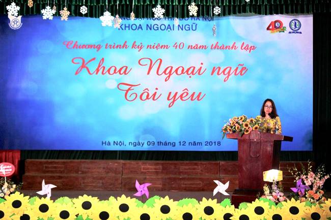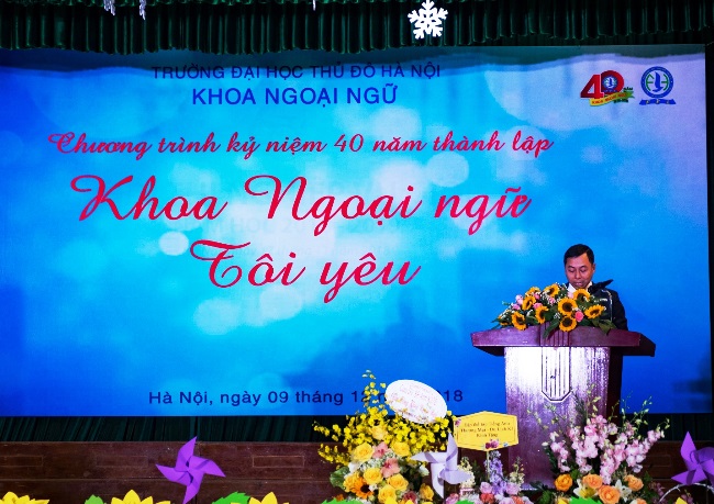 Sáng ngày 09 tháng 12, Khoa Ngoại ngữ long trọng tổ chức “Lễ kỉ niệm 40 năm thành lập Khoa Ngoại Ngữ 1978- 2018”. Tới dự và chung vui với các thế hệ cán bộ giảng viên, các thế hệ sinh viên trong khoa có TS Đỗ Hồng Cường, Phó Bí thư Đảng ủy, Phó Hiệu trưởng nhà trường; GS.TS Đặng Văn Soa, Phó Hiệu trưởng nhà trường; Lãnh đạo các Khoa, Phòng ban trường Đại học Thủ đô Hà Nội và đại diện các đơn vị có quan hệ hợp tác với khoa Ngoại ngữ.