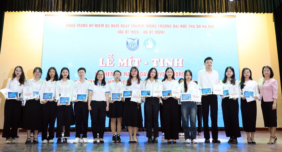 Sáng 09/01, Hội Sinh viên Việt Nam Trường Đại học Thủ đô Hà Nội đã long trọng tổ chức lễ Mít tinh Chào mừng kỷ niệm 74 năm ngày truyền thống Học sinh sinh viên (HSSV) và Hội Sinh viên Việt Nam (09/01/1950 – 09/01/2024); 65 năm ngày truyền thống Trường Đại học Thủ đô Hà Nội (06/01/1959 – 06/01/2024); Tuyên dương “sinh viên 5 tốt” cấp Trường và cấp Thành phố.