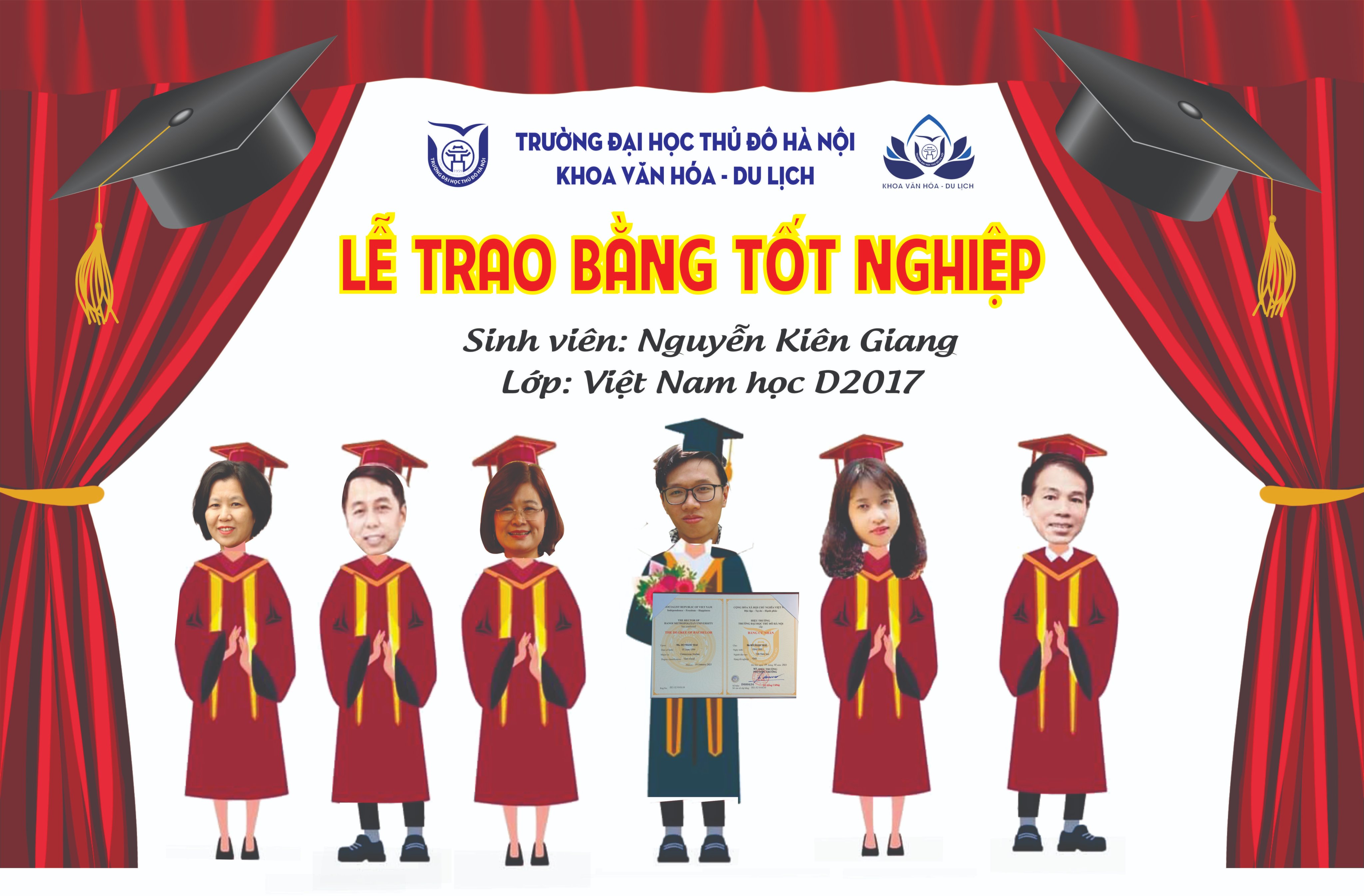 Chiều 5/11/20211 khoa Văn hoá Du lịch, Trường Đại học Thủ đô Hà Nội đã tổ chức Lễ chia tay sinh viên khoá 2017 – 2021. Dự lễ chia tay và trao bằng tốt nghiệp có GS.TS. Đặng Văn Soa, Phó Hiệu trưởng Nhà trường; TS. Lê Thị Thu Hương, Trưởng khoa Văn hoá Du lịch; cán bộ, giảng viên và sinh viên trong khoa. Buổi lễ được tổ chức dưới hình thức trực tuyến và phát trên fanpge của khoa Văn hoá Du lịch.