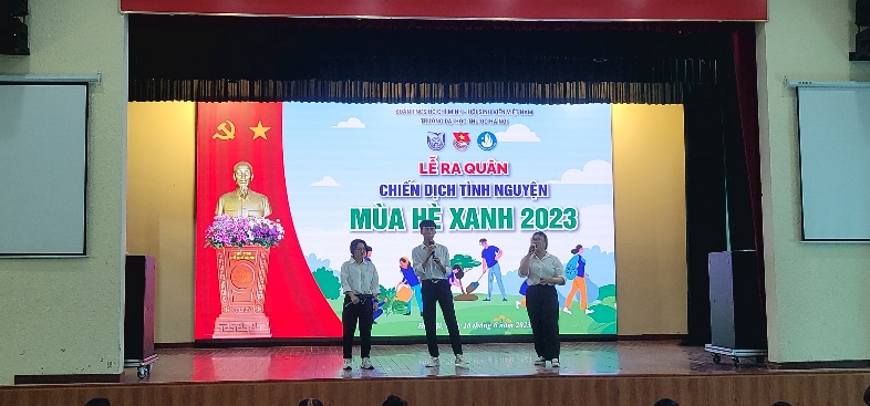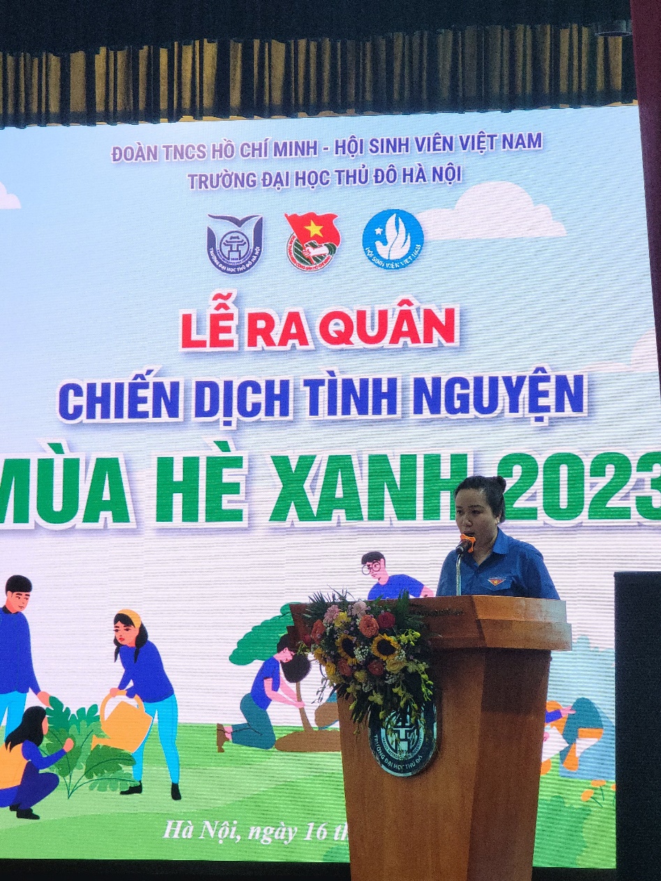Năm nay, lễ ra quân chiến dịch tình nguyện “Mùa hè xanh” được tổ chức vào ngày 16/06/2023 với sự tham dự Ban Giám hiệu Nhà trường, trưởng đơn vị cũng như Thành Đoàn và Đoàn phường Quan Hoa, quận Cầu Giấy.