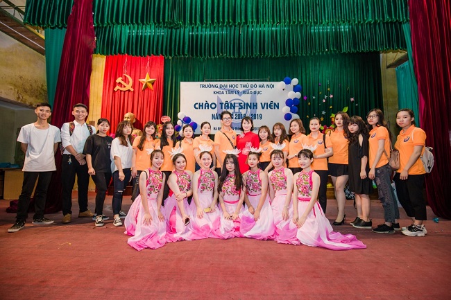 Sinh viên lớp CTXH D2018 trong Chương trình Chào tân sinh viên năm học 2018 – 2019