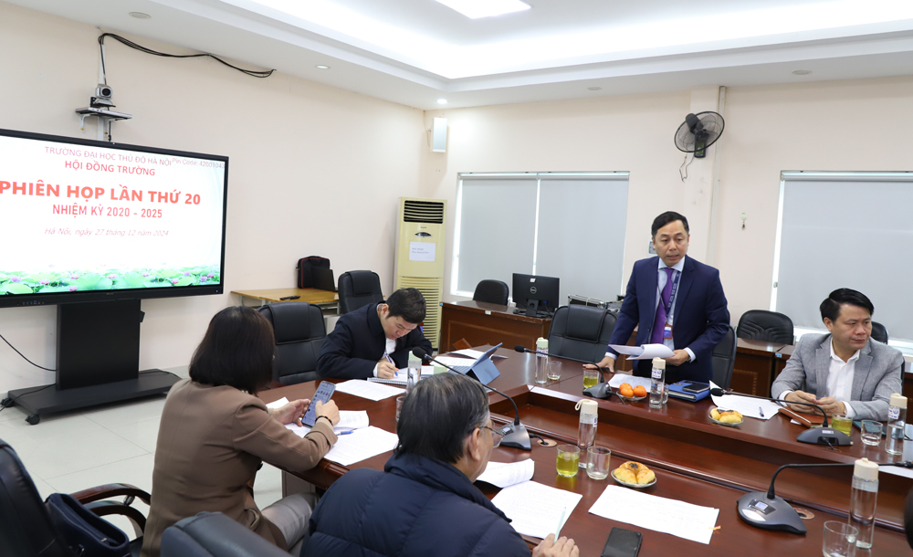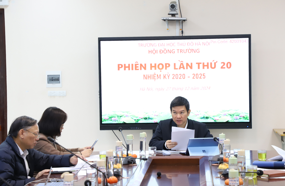 Tại phiên họp lần thứ hai mươi, Hội đồng trường đã thảo luận và thông qua nhiều nội dung quan trọng: Phương hướng tuyển sinh trình độ Đại học, Thạc sĩ, Tiến sĩ năm 2025; chính sách hỗ trợ người học năm 2025; kế hoạch tài chính năm 2025; báo cáo giám sát công tác hợp tác phát triển của Trường giai đoạn 2020 - 2024 và Báo cáo kiểm điểm tập thể Hội đồng trường năm 2024.