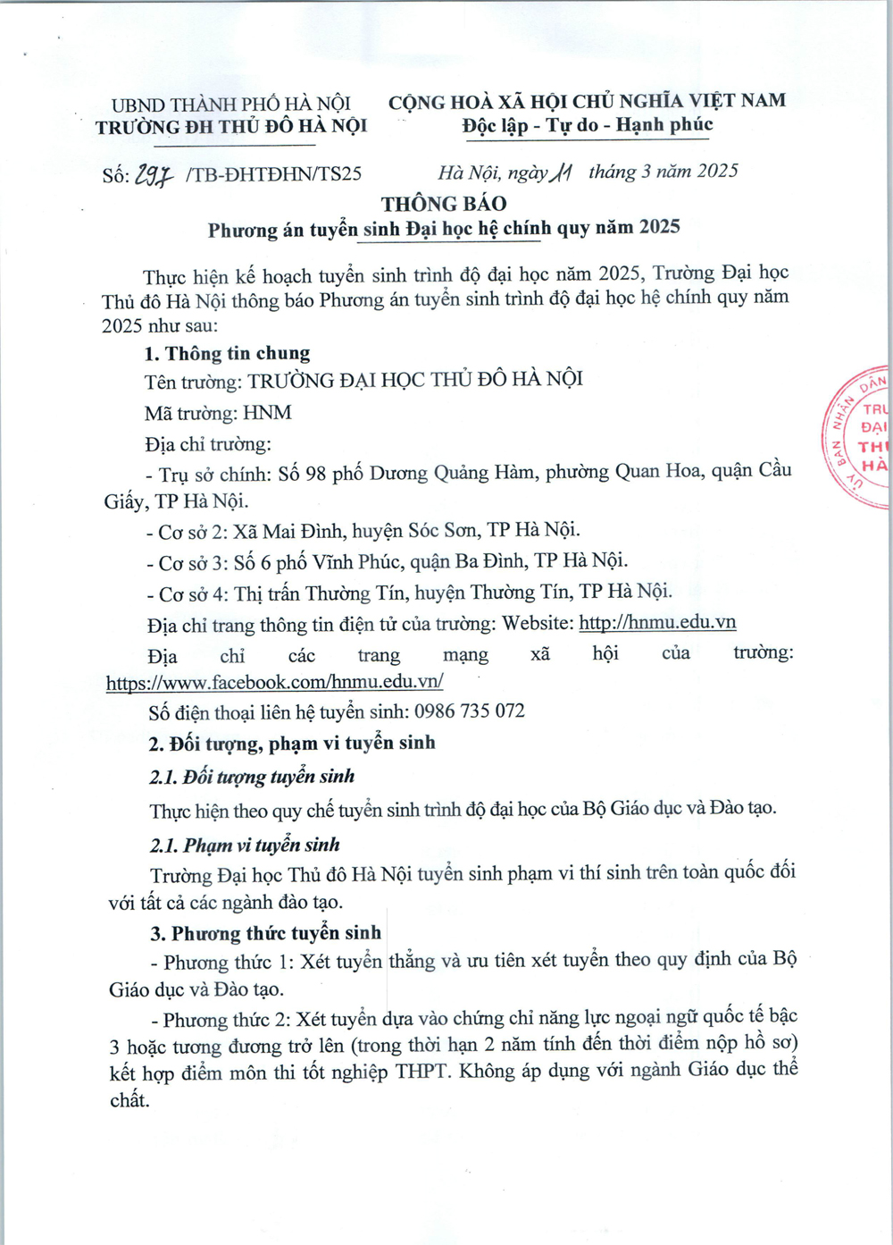 Chi tiết Phương án Tuyển sinh năm 2025 của Trường Đại học Thủ đô Hà Nội xem TẠI ĐÂY 13/03/2025 10:11:42 | Số lần xem: 143040 1 phút