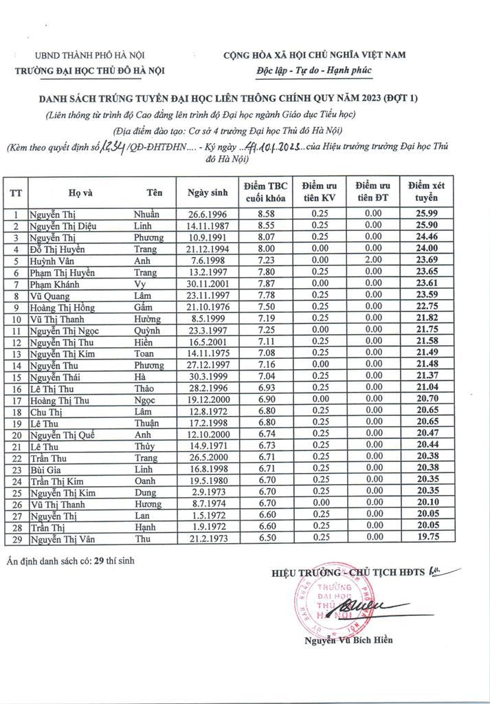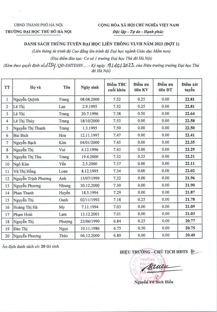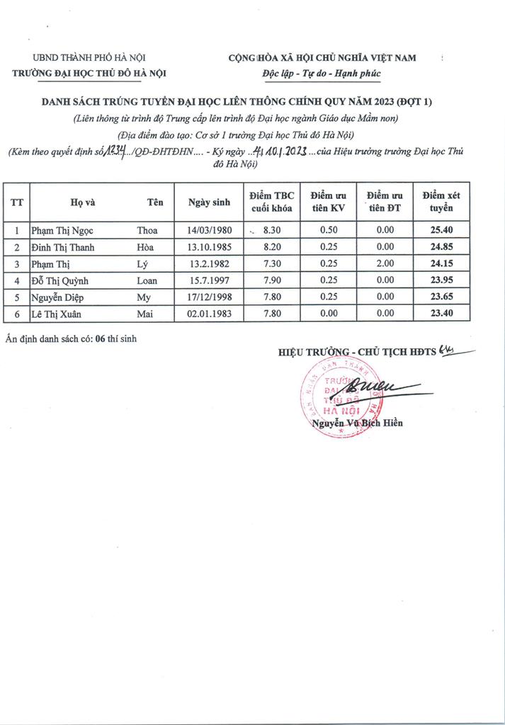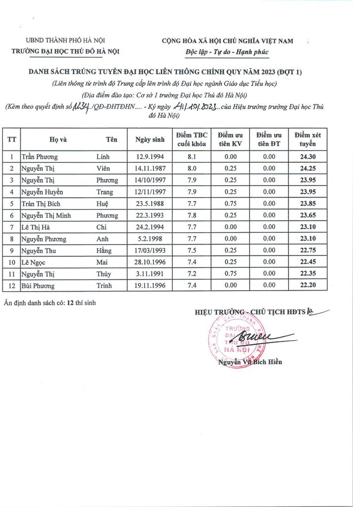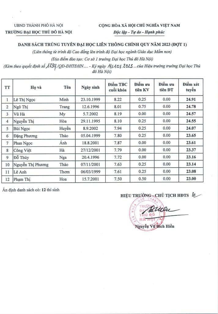Quyết định công bố công nhận thí sinh trúng tuyển trình độ Đai học liên thông chính quy và vừa làm vừa học đối tượng tốt nghiệp từ Trung cấp trở lên năm 2023