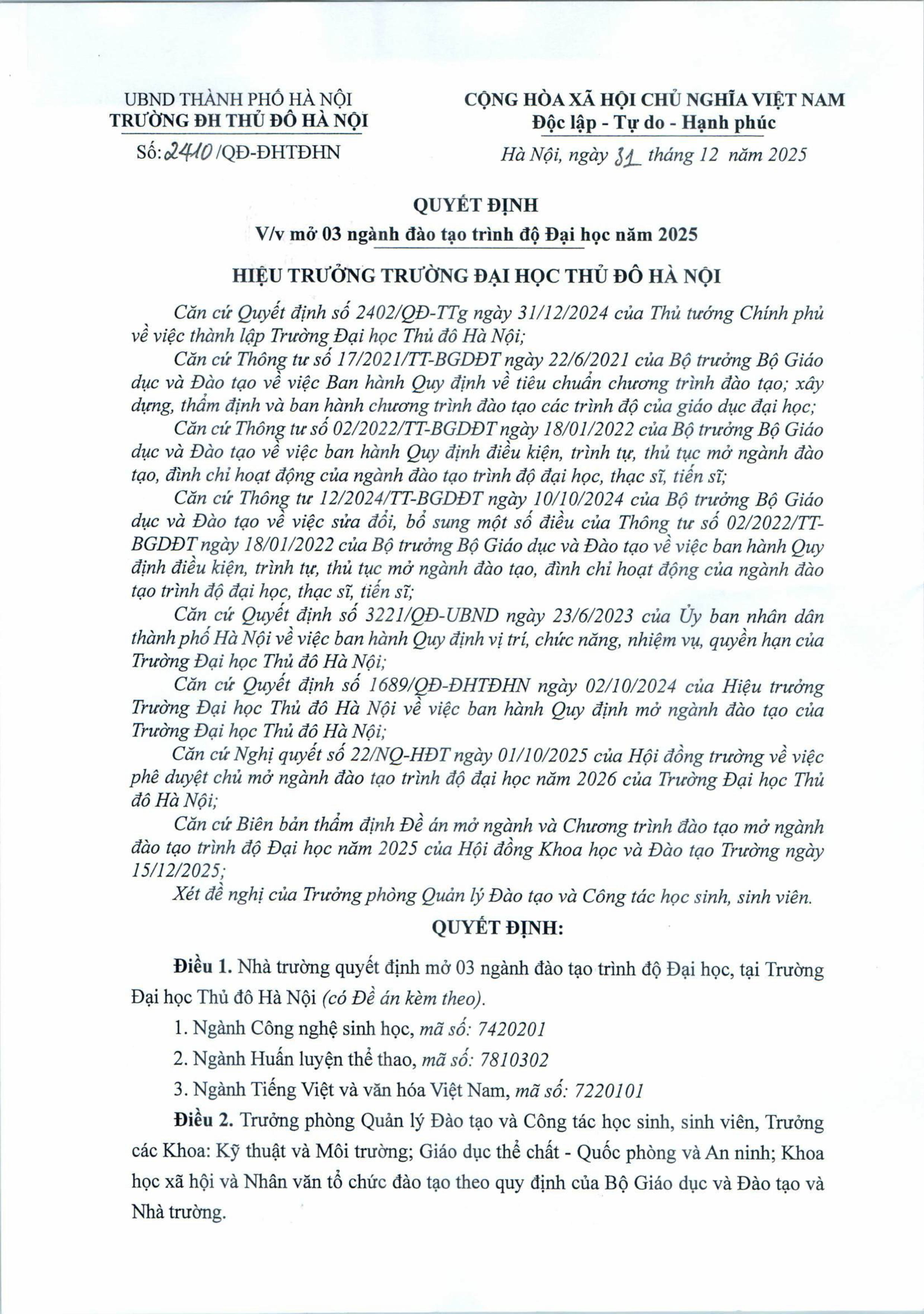 1. CHI TIẾT ĐỀ ÁN NGÀNH TIẾNG VIỆT VÀ VĂN HÓA TIẾNG VIỆT xem TẠI ĐÂY2. CHI TIẾT ĐỀ ÁN NGÀNH CÔNG NGHỆ SINH HỌC xem TẠI ĐÂY3. CHI TIẾT ĐỀ ÁN NGÀNH HUẤN LUYỆN THỂ THAO xem TẠI ĐÂY 05/01/2026 10:49:22 | Số lần xem: 70 1 phút