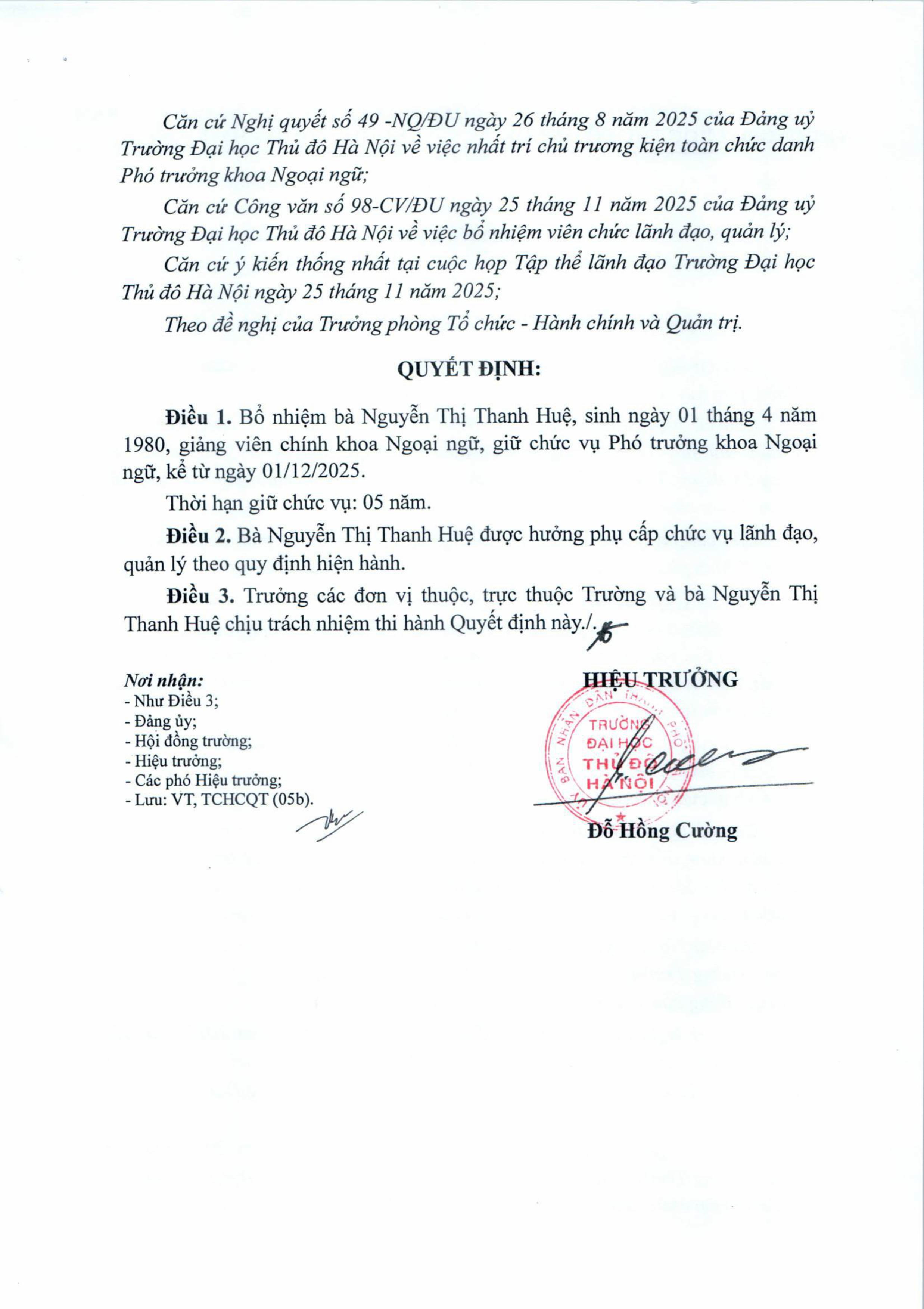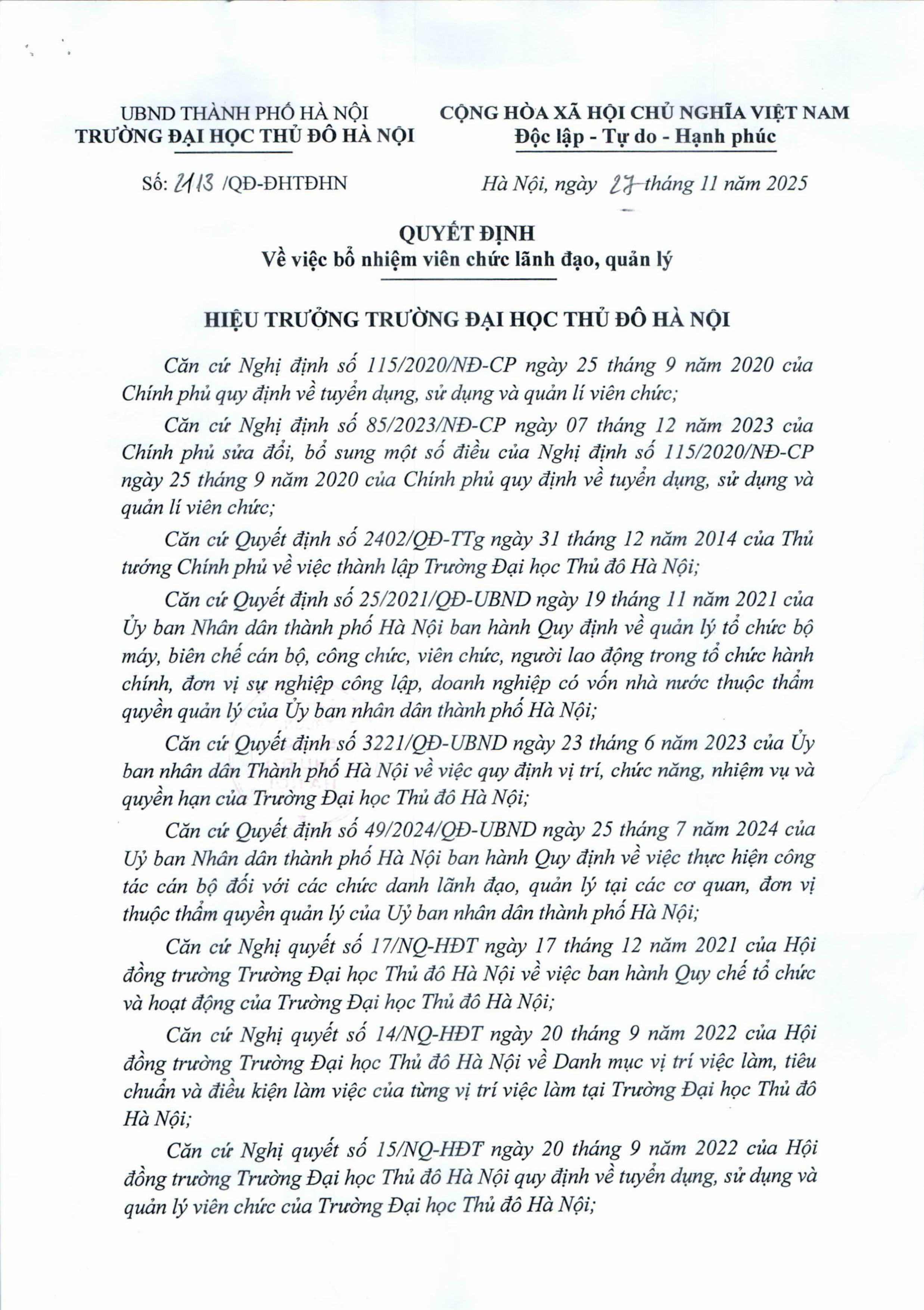 Thông báo tuyển dụng viên chức làm việc tại trường Đại học Thủ đô Hà Nội