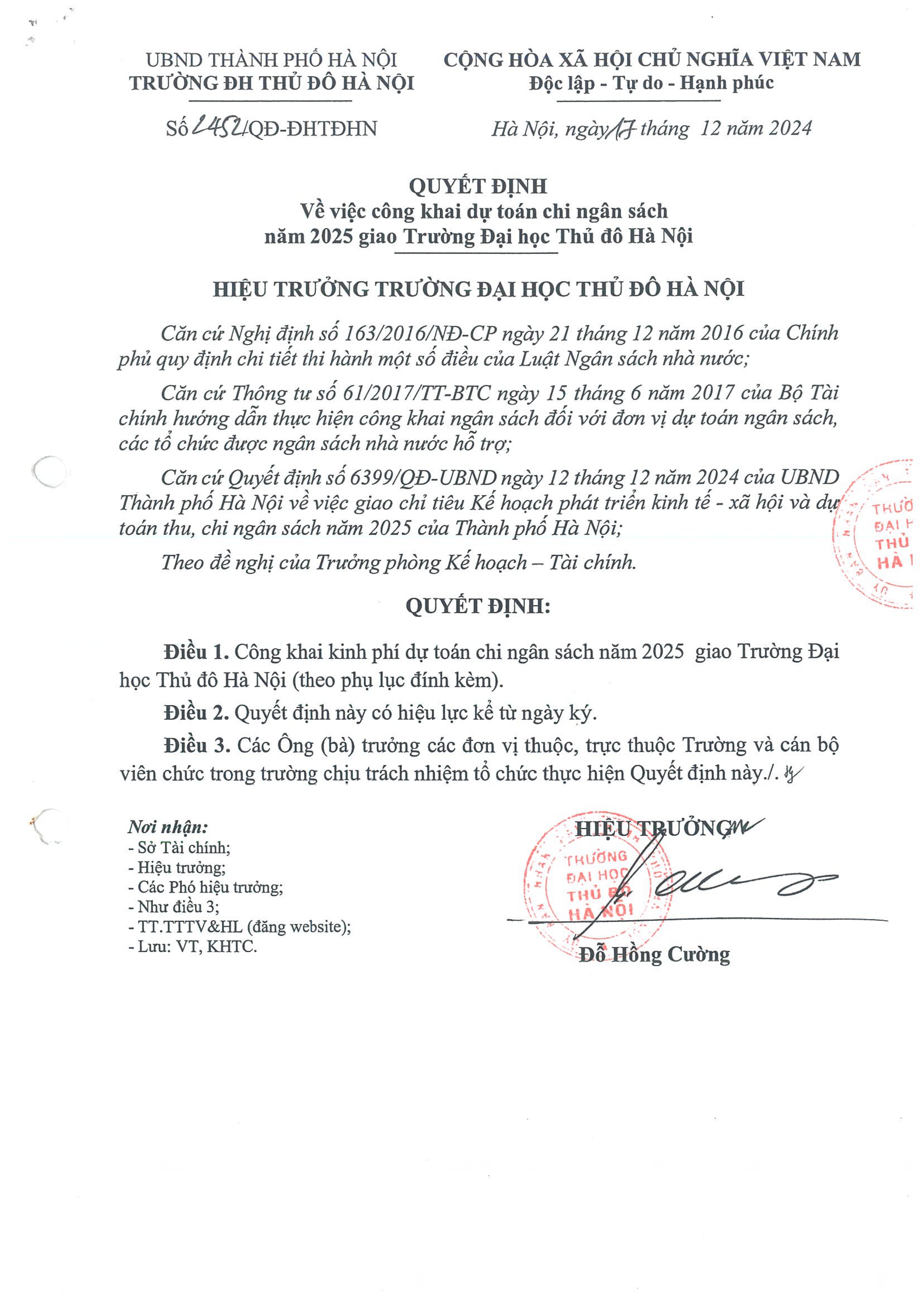 Quyết định về việc công khai dự toán chi ngân sách năm 2025