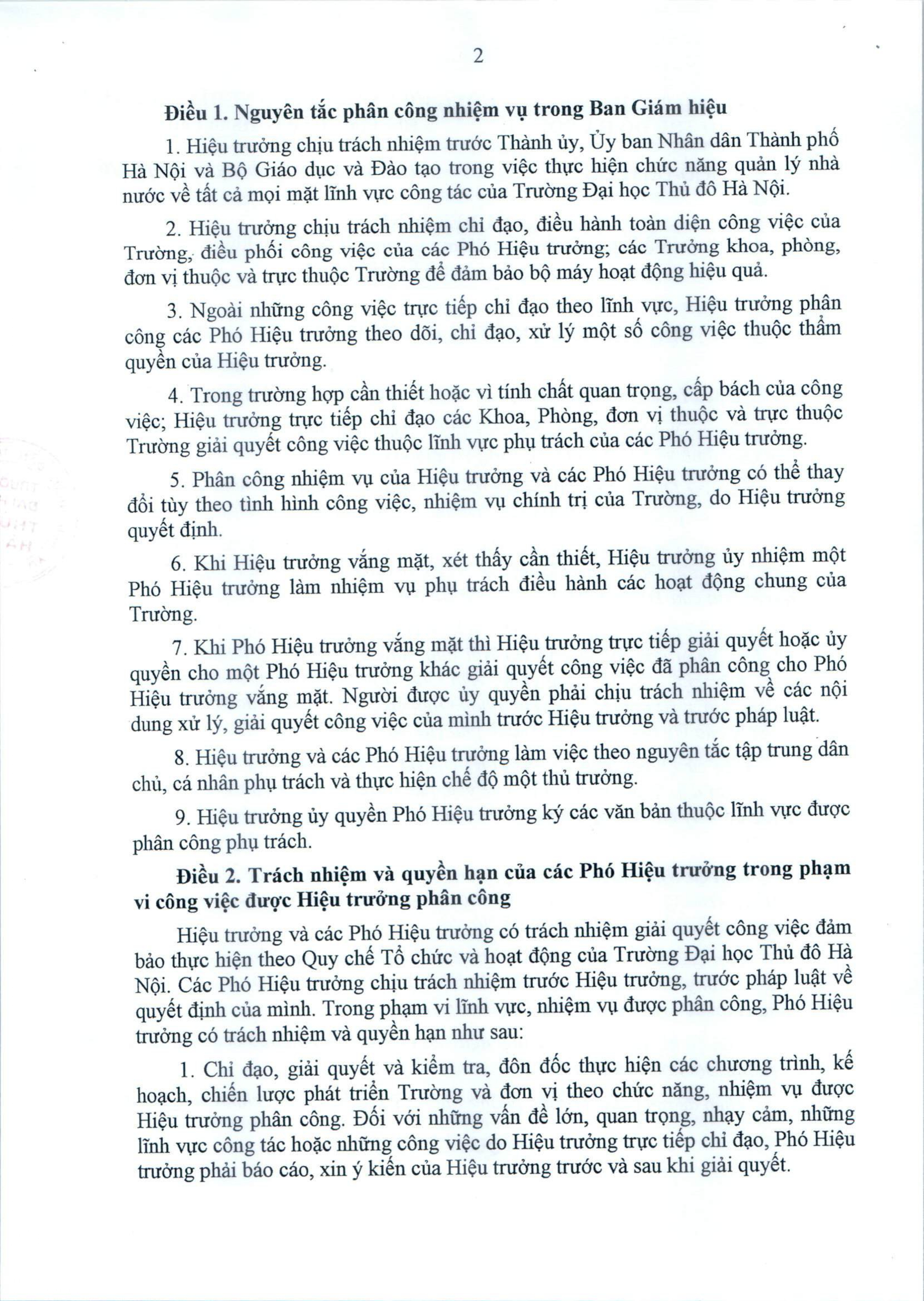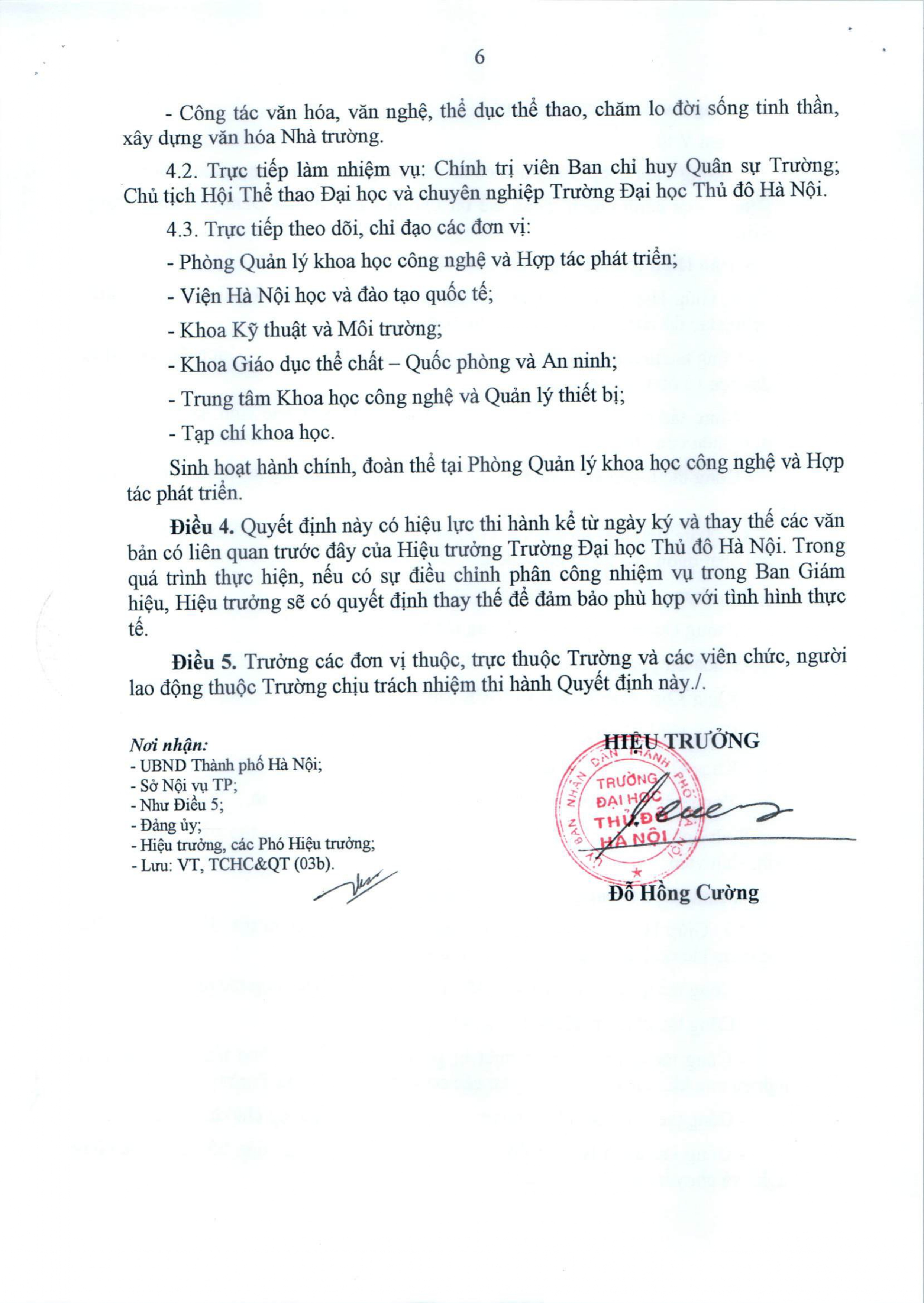 Quyết định về việc phân công nhiệm vụ trong Ban Giám hiệu Trường Đại học Thủ đô Hà Nội