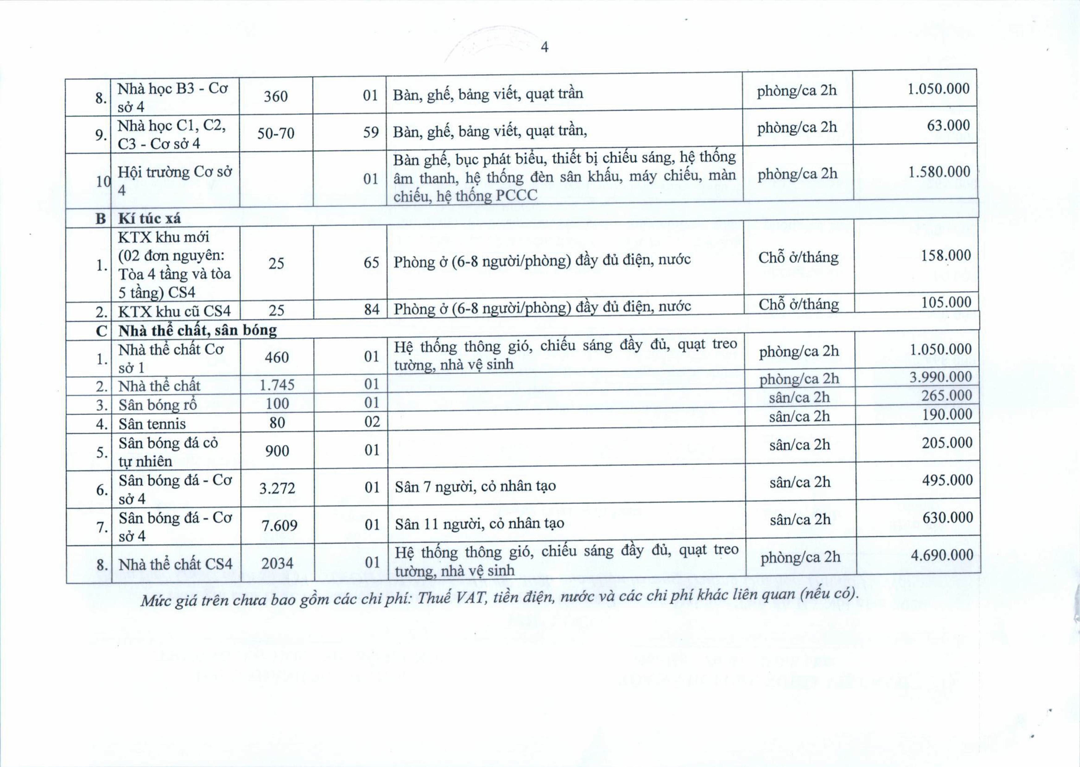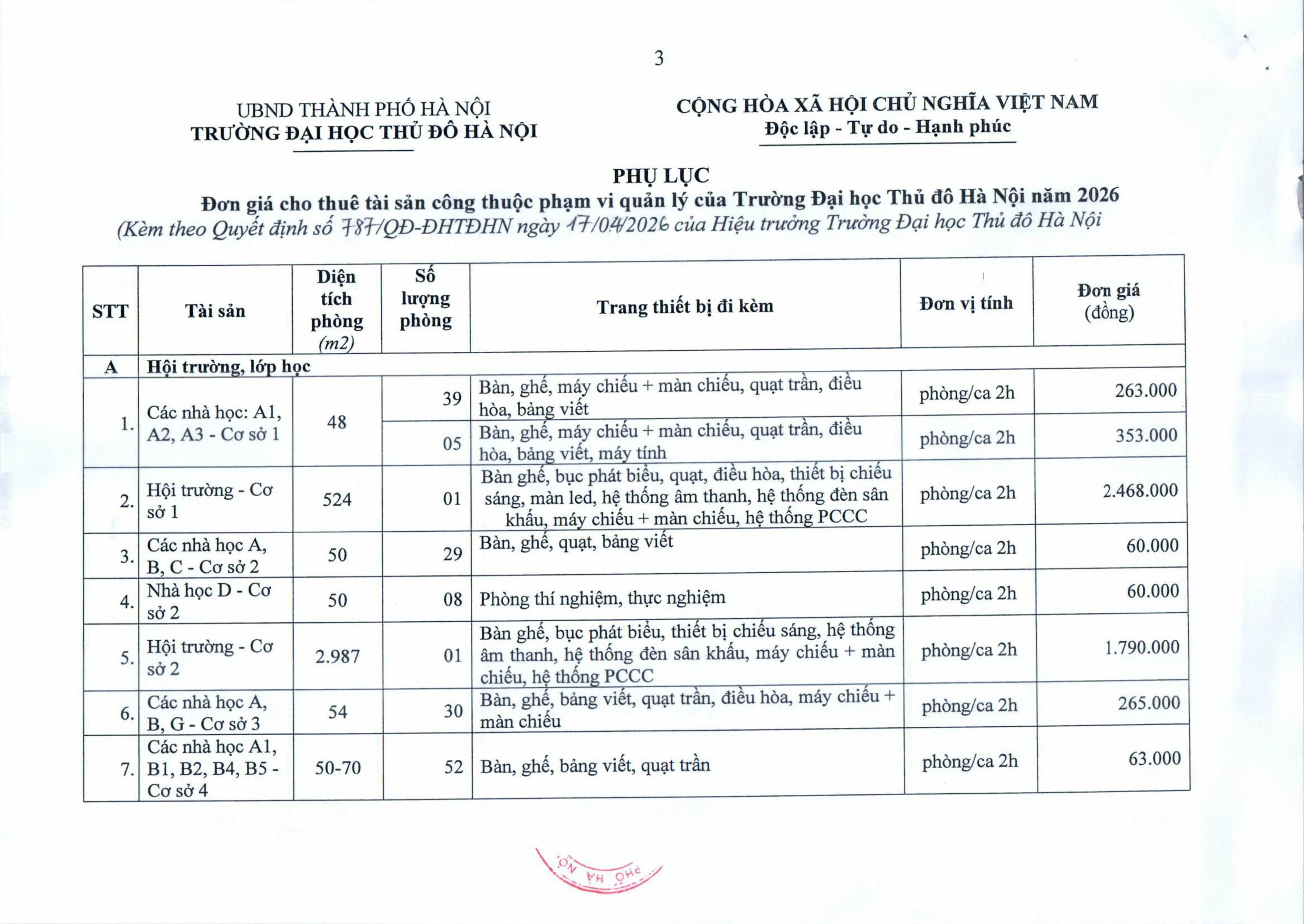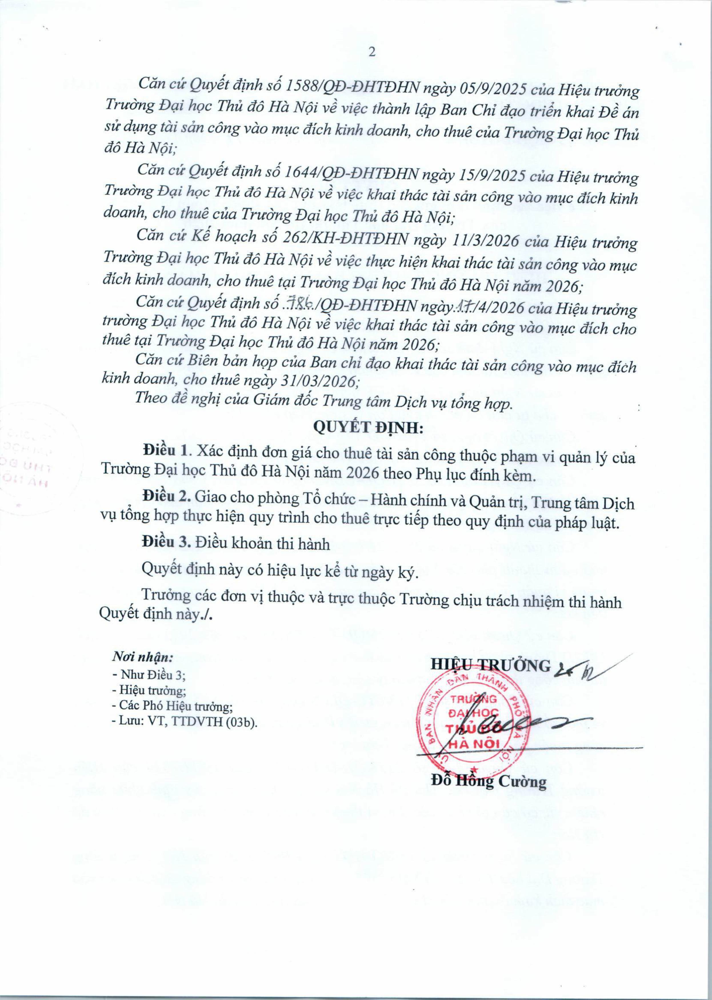 Quyết định về xác định đơn giá cho thuê tài sản công thuộc phạm vi quản lý của Trường Đại học Thủ đô Hà Nội