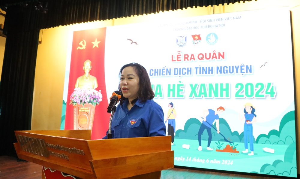 Phát biểu khai mạc buổi lễ, đồng chí Hà Thu Thủy- Bí thư Đoàn Trường đã gửi gắm đến các đội hình tình nguyện niềm tin yêu và tự hào, đồng thời nhấn mạnh, bên cạnh lòng nhiệt huyết, các tình nguyện viên cần chú ý tới sự an toàn cho bản thân và đồng đội. Mùa hè xanh chính là dịp để các Đoàn viên bước vào thực tế cuộc sống, hun đúc thêm nghị lực bản thân, sự quan tâm, chia sẻ của bản thân với cộng đồng để trở thành những chiến sĩ vừa hồng vừa chuyên, hoàn thành mọi nhiệm vụ của chiến dịch.