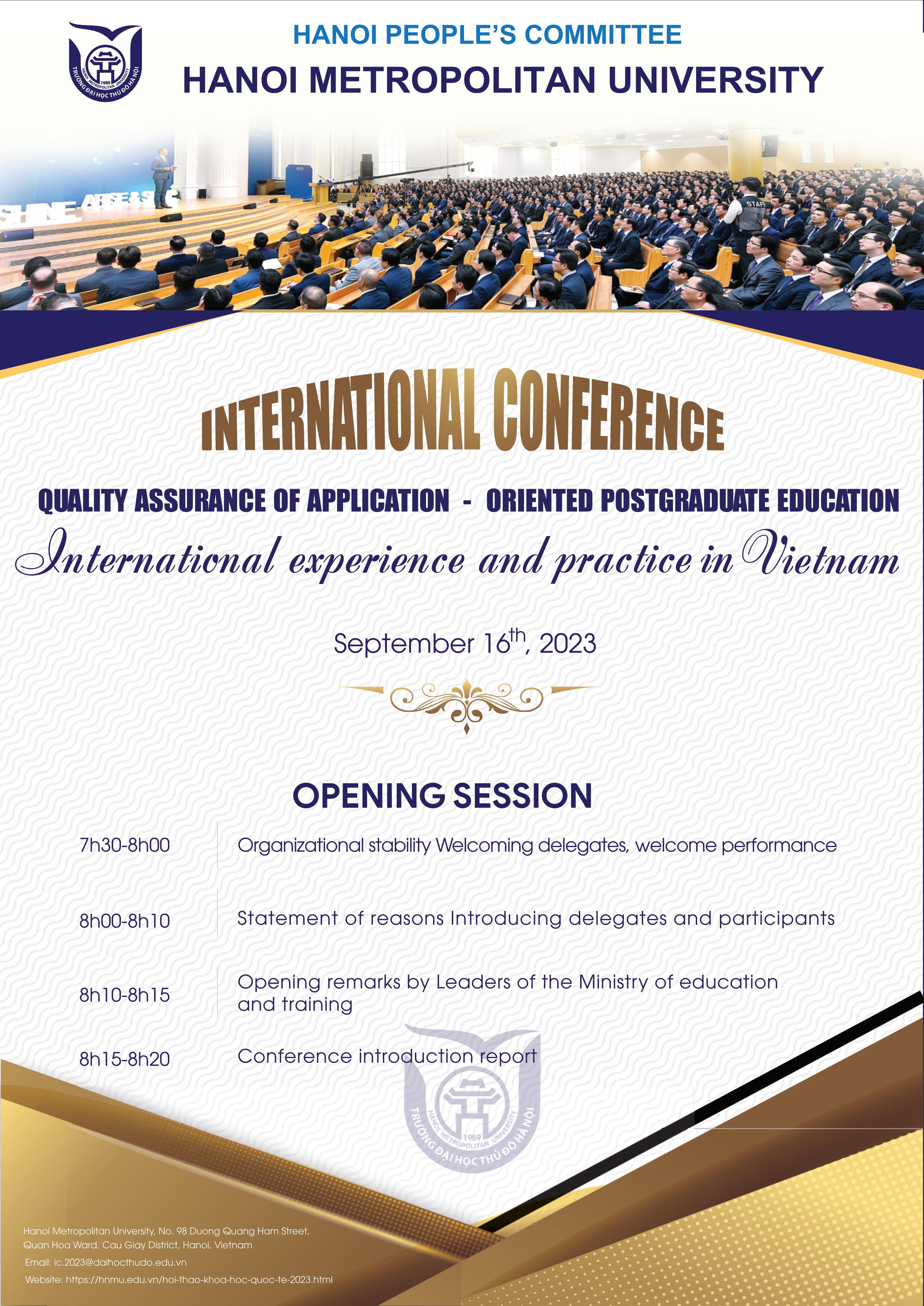 Sau gần 2 năm nỗ lực chuẩn bị, Hội thảo quốc tế: “Đảm bảo chất lượng đào tạo Sau đại học theo định hướng ứng dụng: Kinh nghiệm quốc tế và thực tiễn Việt Nam” sẽ được diễn ra vào ngày 16/9/2023 tại Trường Đại học Thủ đô Hà Nội.