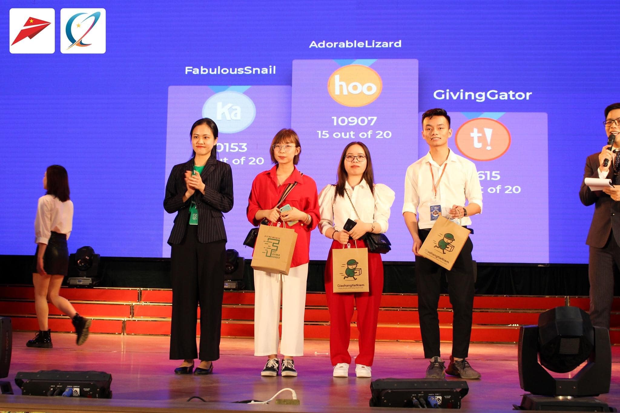 Sinh viên Nguyễn Đình Thái (áo trắng) – Logistics D2018A đã xuất sắc chiến thắng trong cuộc thi giao lưu với khán giả