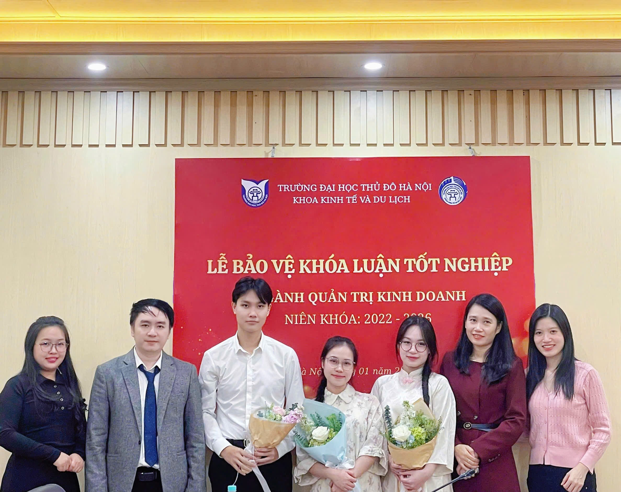 Buổi bảo vệ khóa luận tốt nghiệp của sinh viên ngành Quản trị Kinh doanh – khóa 2022 vừa được Khoa Kinh tế và Du lịch, Trường Đại học Thủ đô Hà Nội tổ chức thành công trong không khí học thuật nghiêm túc, trang trọng và giàu cảm xúc.