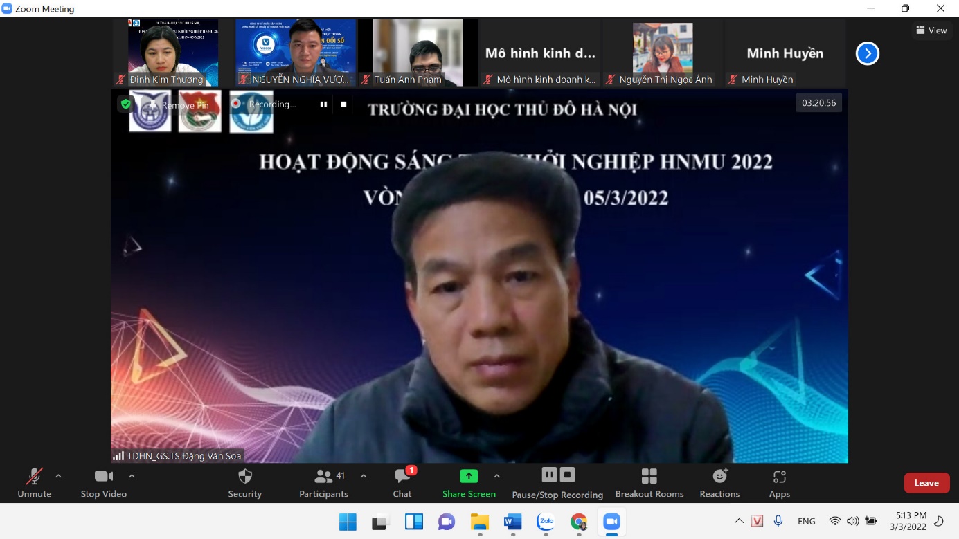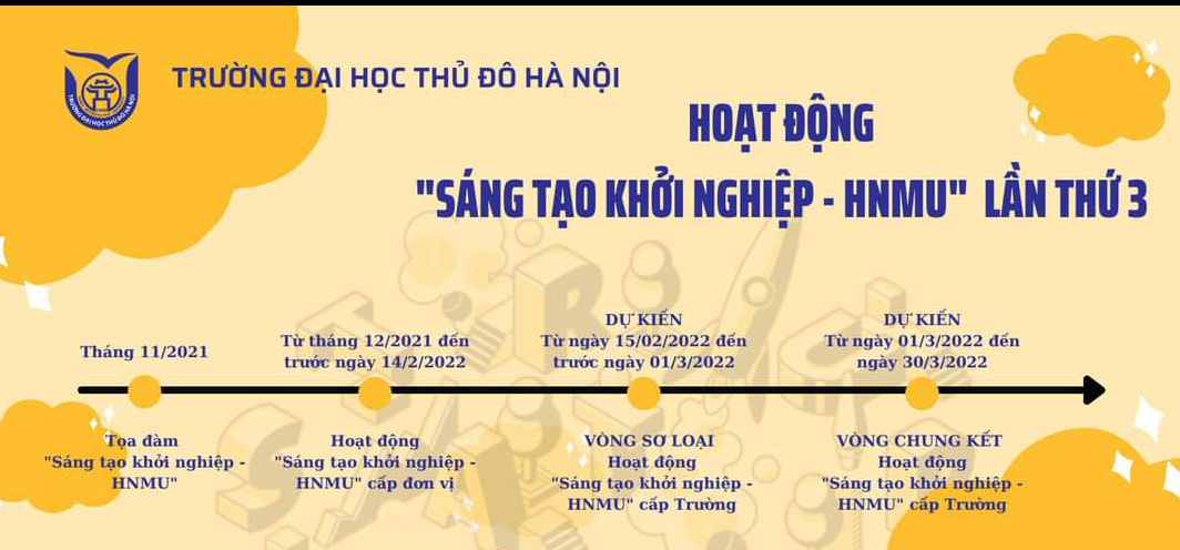 Hưởng ứng phong trào “Quốc gia khởi nghiệp” và các hoạt động hướng tới kỷ niệm 91 năm ngày thành lập Đoàn Thanh niên Cộng sản Hồ Chí Minh (26/03/1931 – 26/03/2022), nối tiếp hoạt động “Sáng tạo khởi nghiệp” đã được tổ chức, Phòng Quản lý Khoa học công nghệ & Hợp tác phát triển phối hợp cùng Đoàn Thanh niên Cộng sản Hồ Chí Minh – Trường Đại học Thủ đô Hà Nội triển khai và tổ chức chuỗi hoạt động “Sáng tạo khởi nghiệp – HNMU” lần thứ 3 năm học 2021 - 2022.